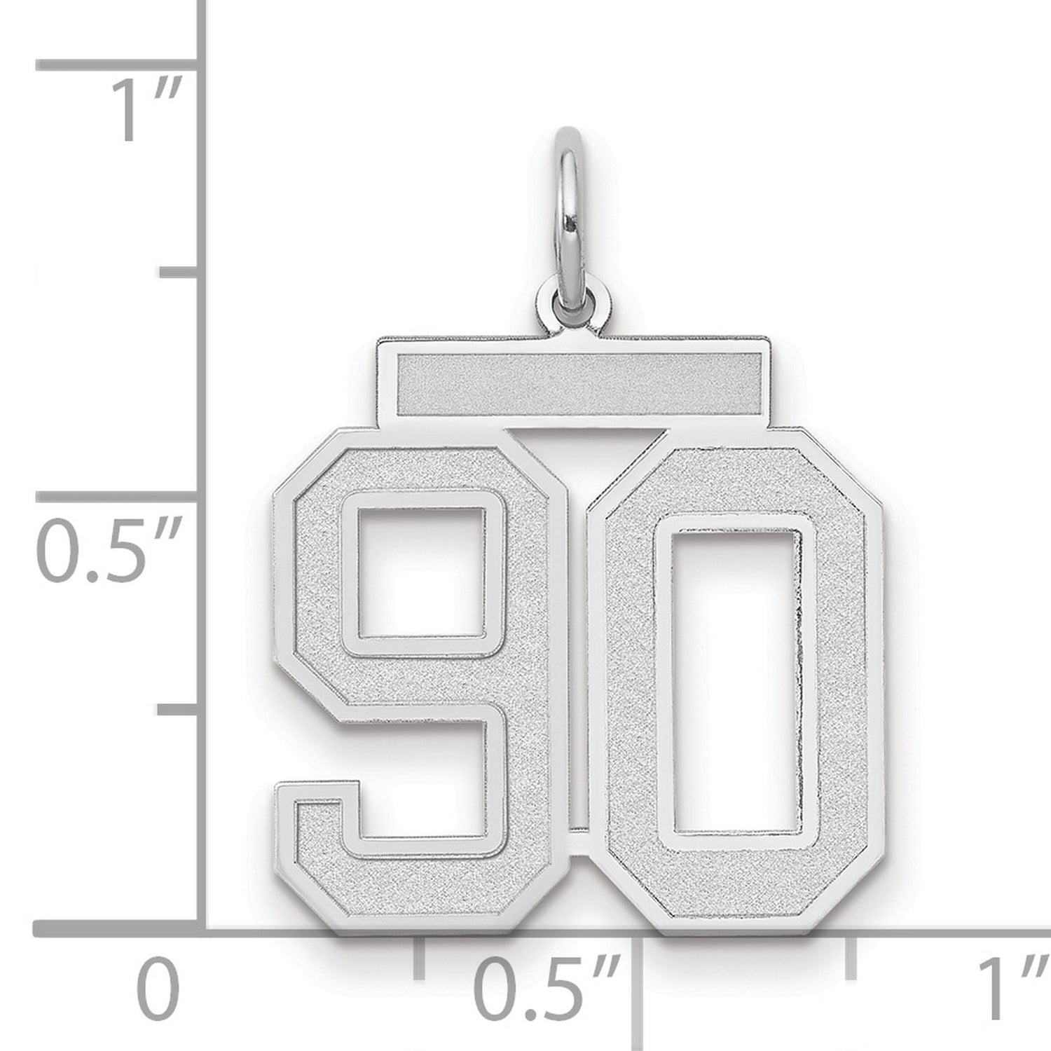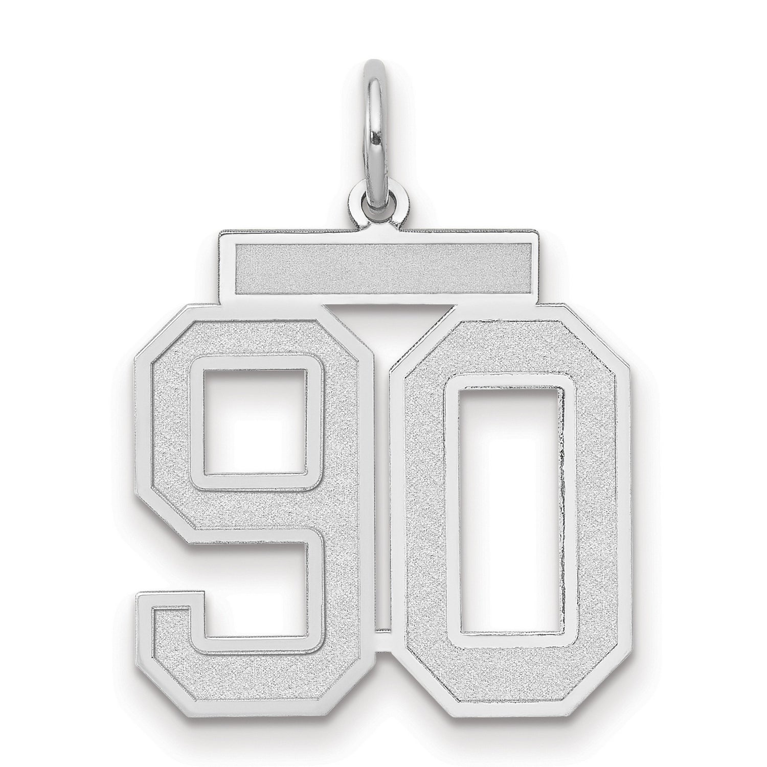Medium Satin Number 90 Charm Pendant in Real 14k White Gold