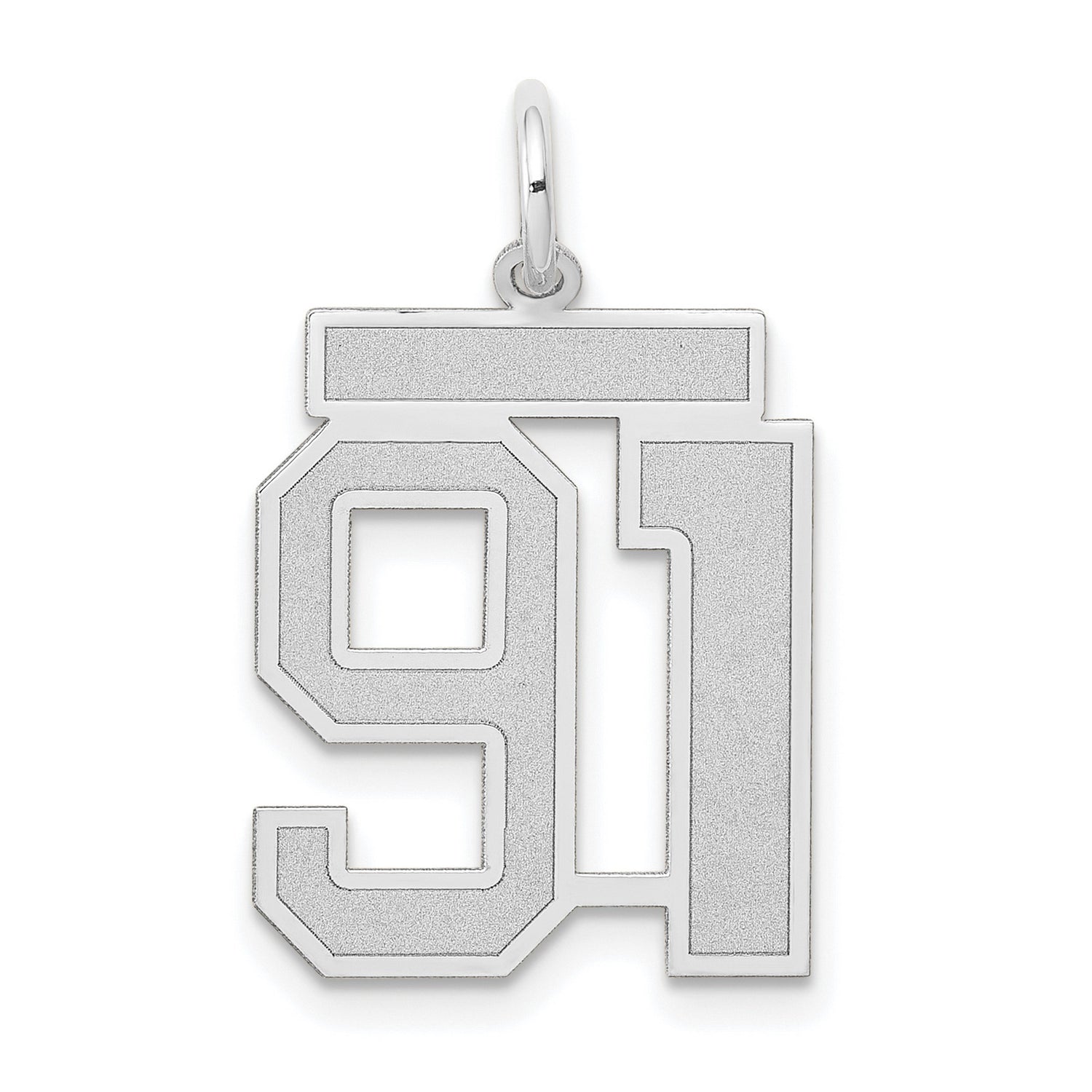 Medium Satin Number 91 Charm Pendant in Real 14k White Gold