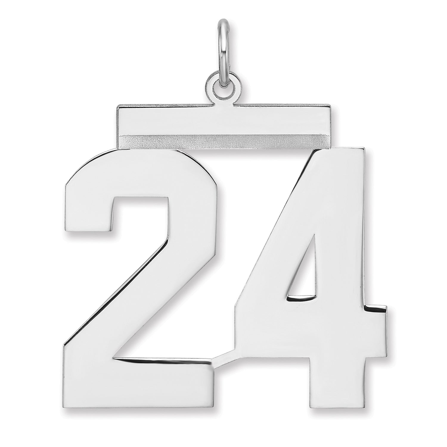 Polished Number 24 Charm Pendant in Real 925 Sterling Silver