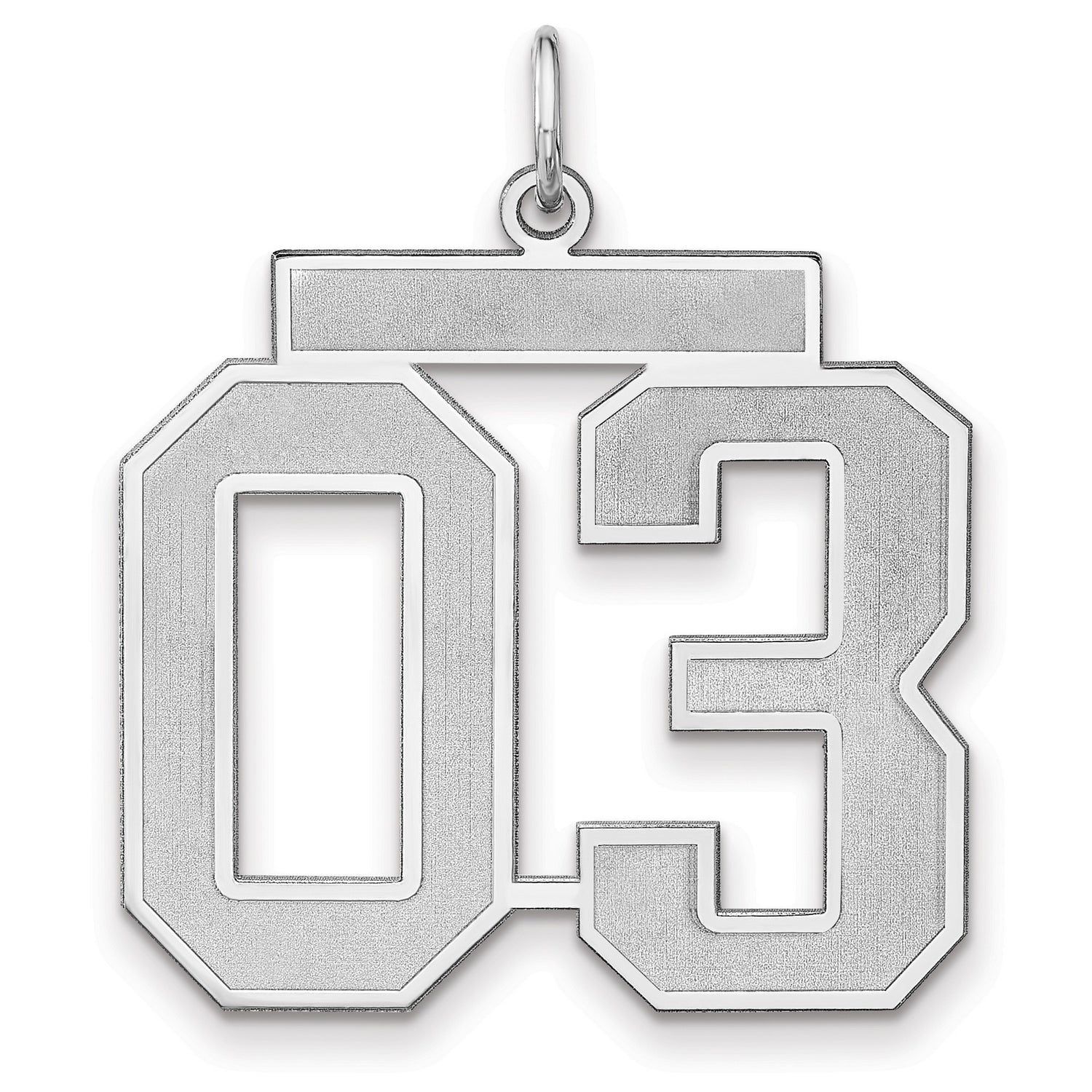 Satin Number 03 Charm Pendant in Real 925 Sterling Silver