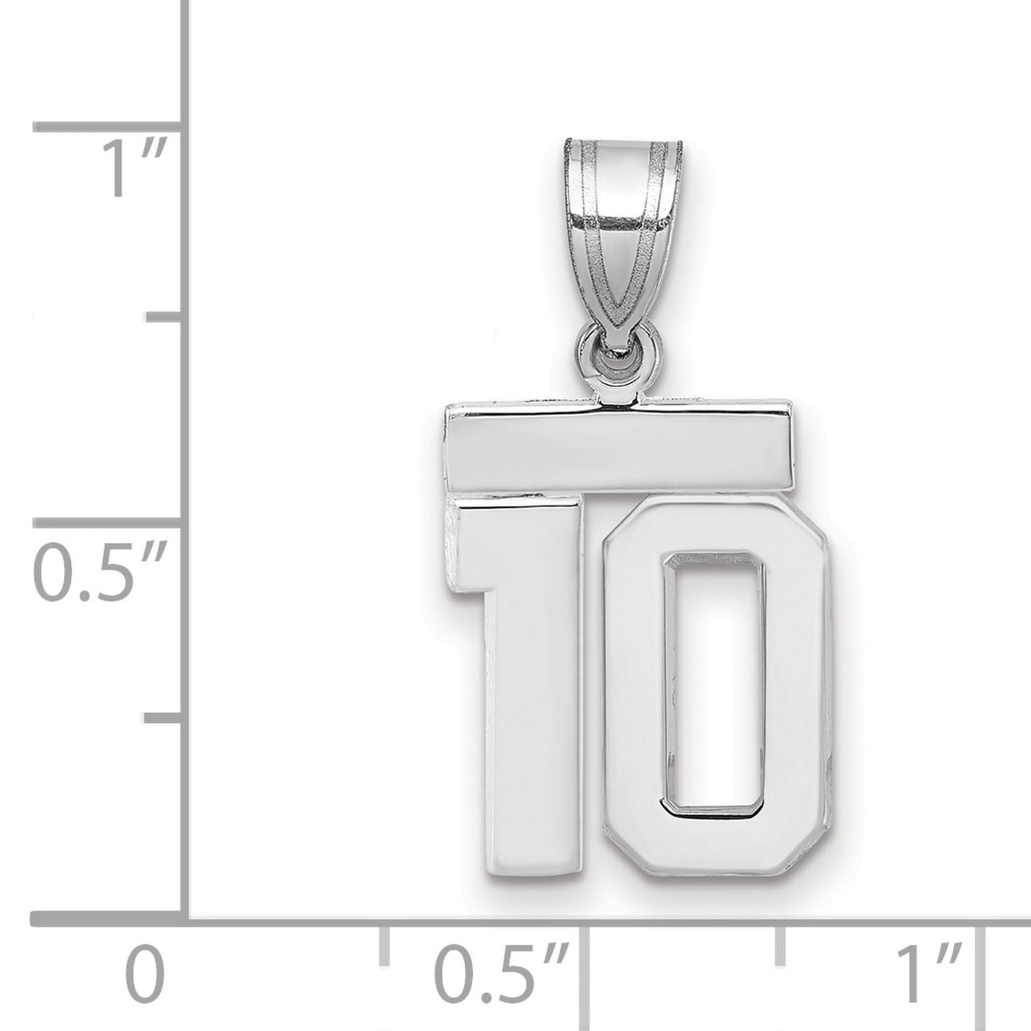 Small Polished Number 10 Charm Pendant in Real 14k White Gold