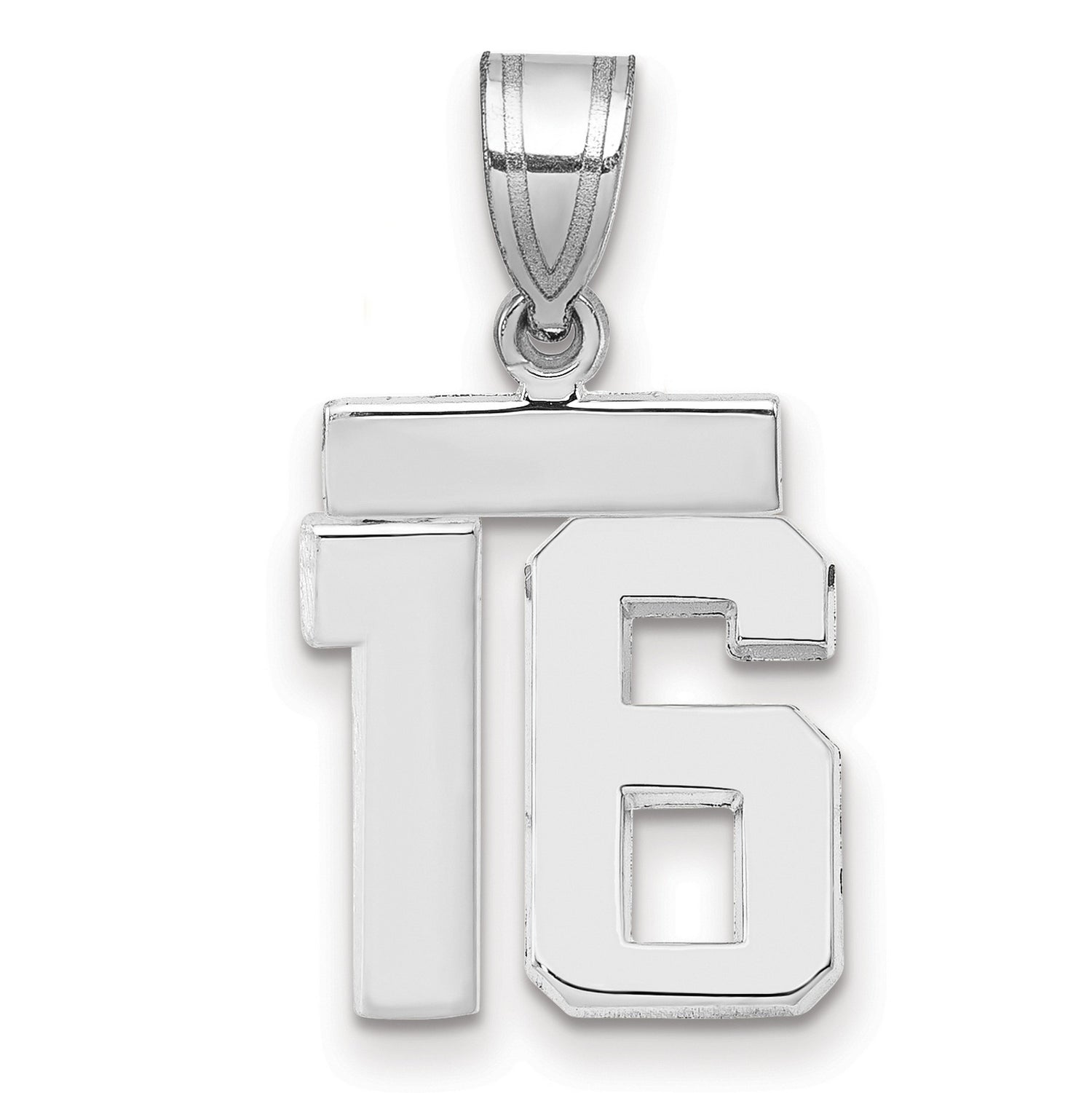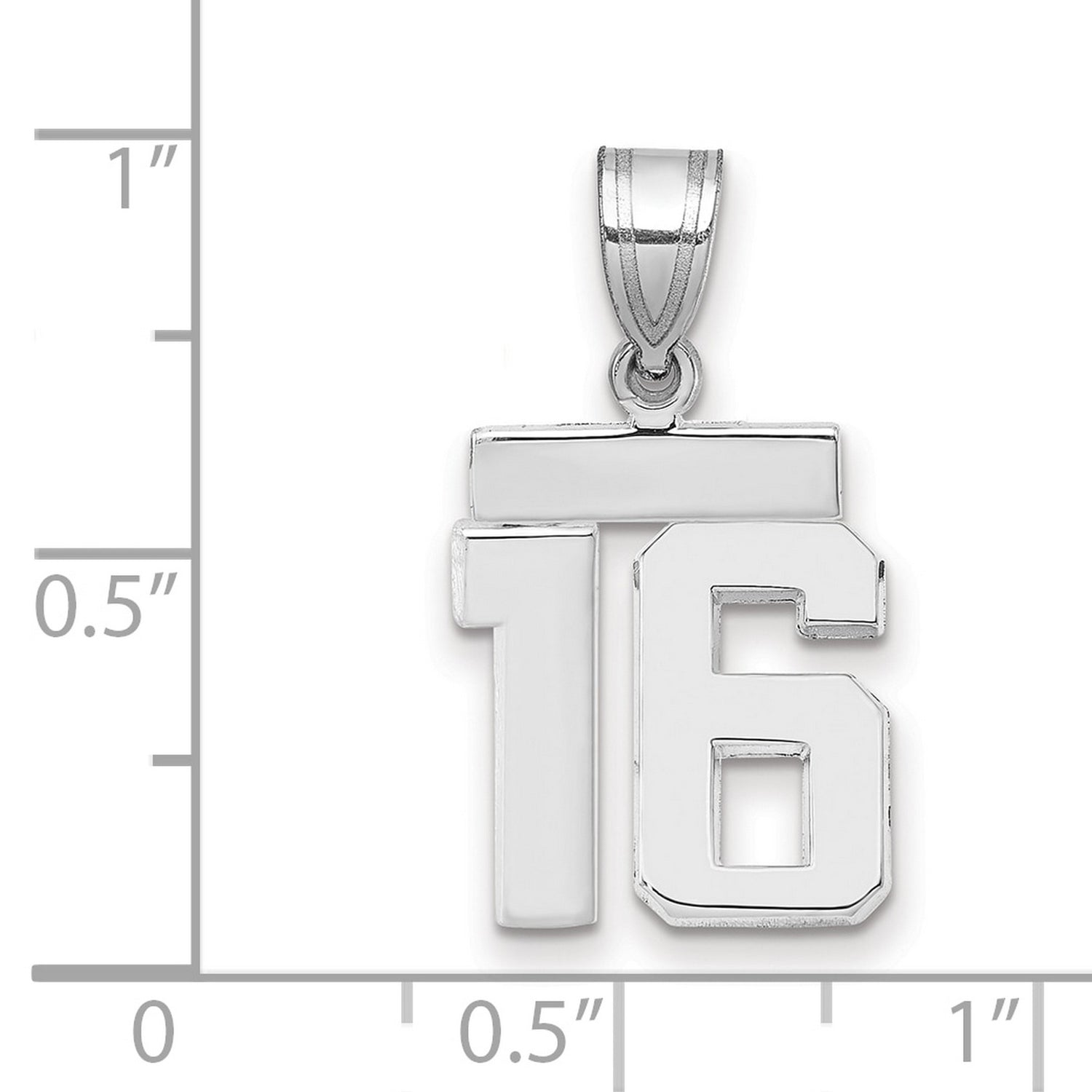 Small Polished Number 16 Charm Pendant in Real 14k White Gold