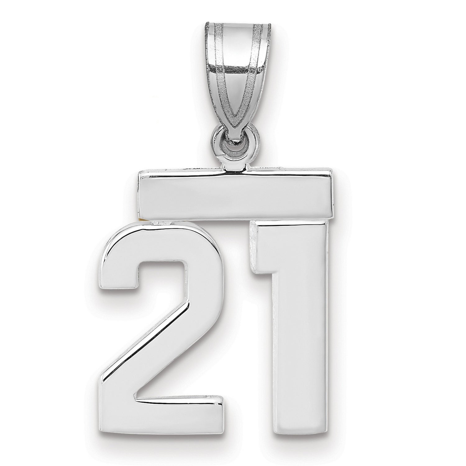 Small Polished Number 21 Charm Pendant in Real 14k White Gold