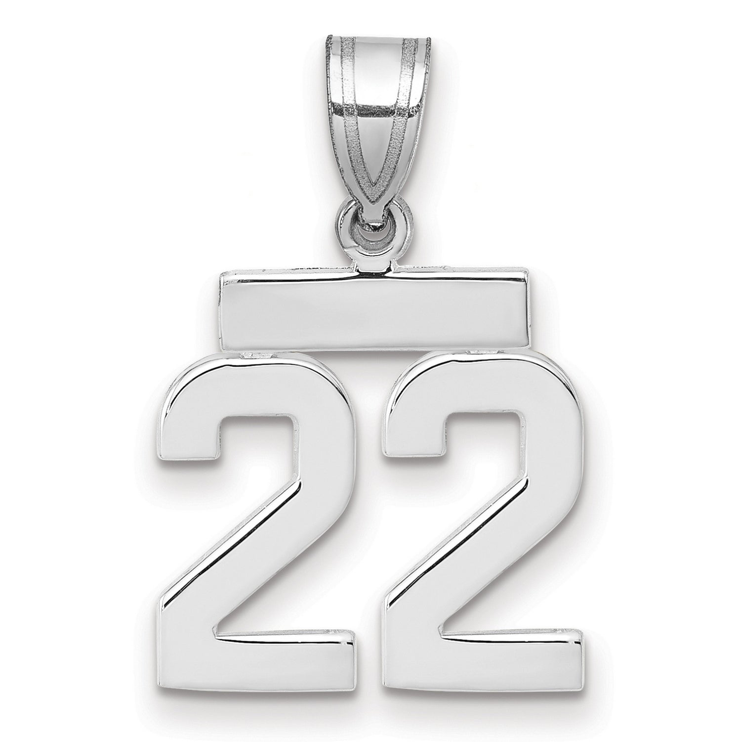 Small Polished Number 22 Charm Pendant in Real 14k White Gold