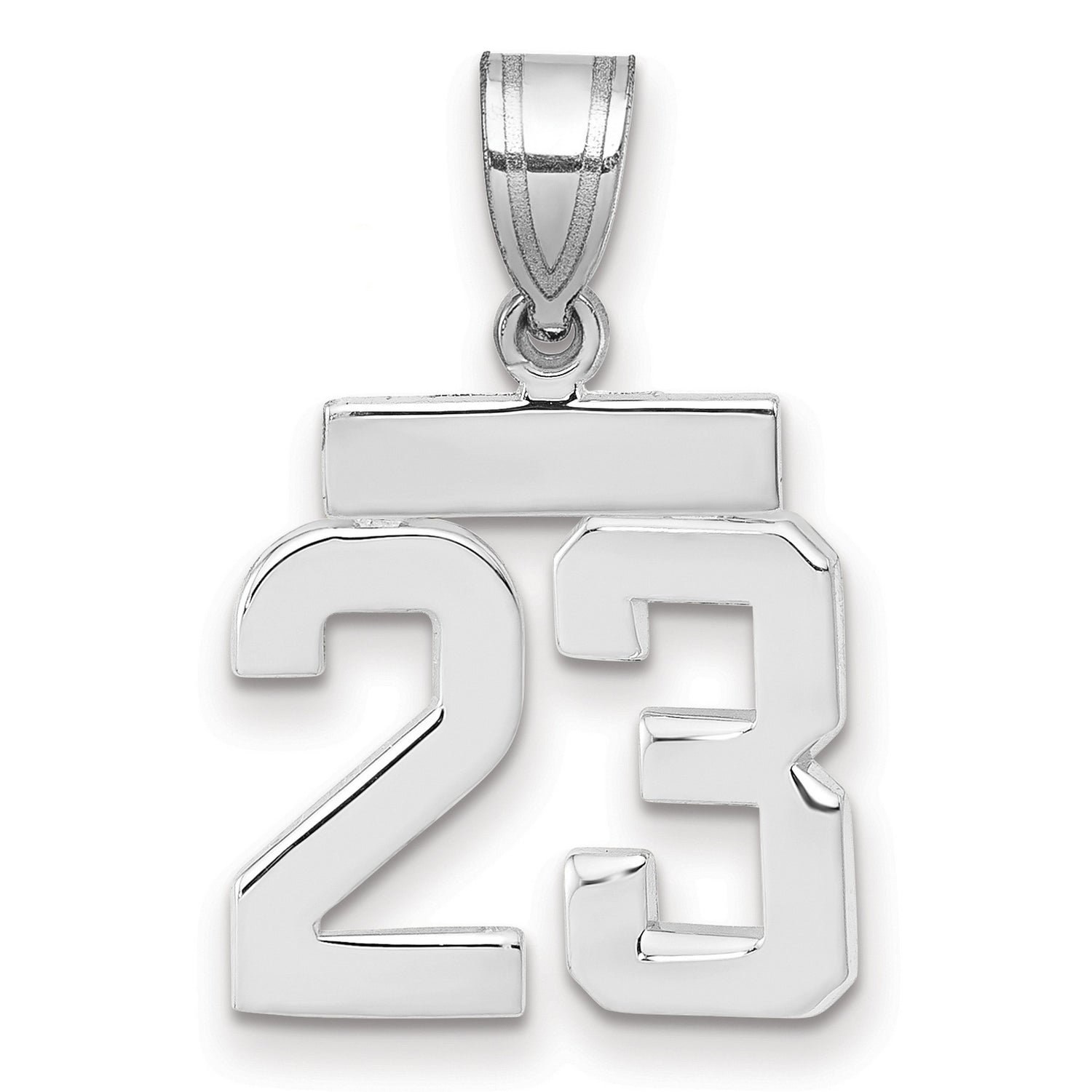 Small Polished Number 23 Charm Pendant in Real 14k White Gold