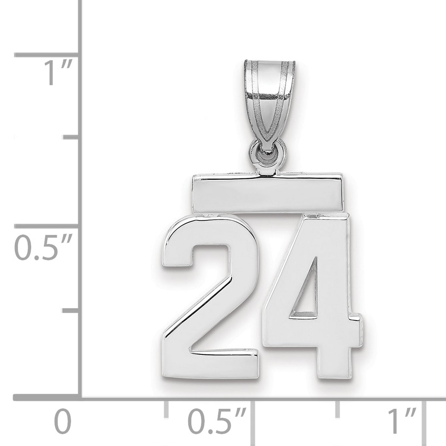 Small Polished Number 24 Charm Pendant in Real 14k White Gold