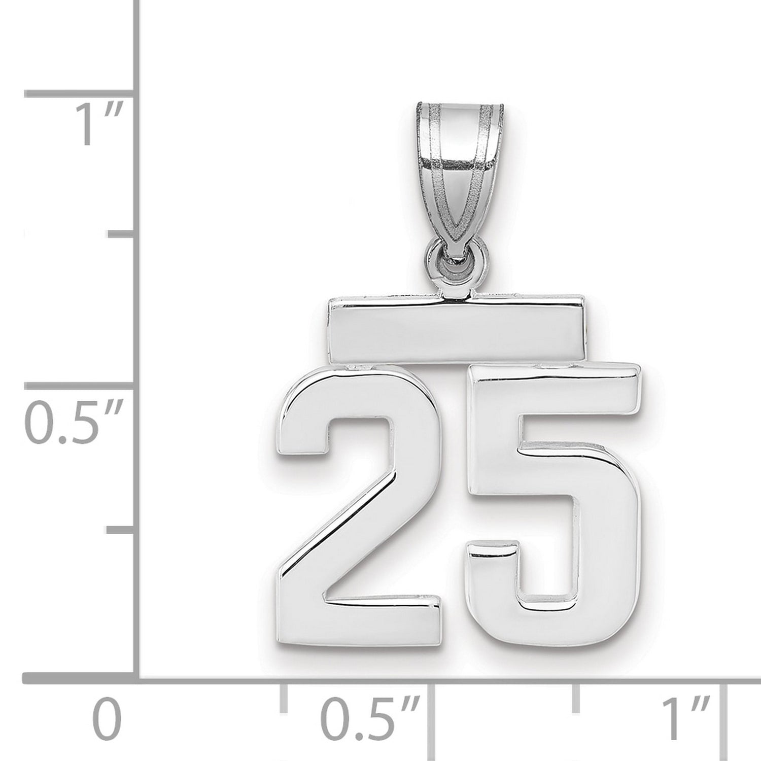 Small Polished Number 25 Charm Pendant in Real 14k White Gold