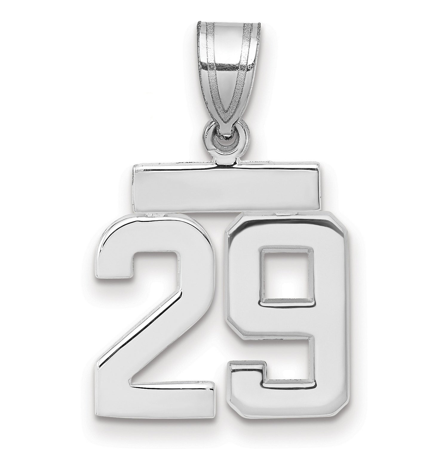 Small Polished Number 29 Charm Pendant in Real 14k White Gold