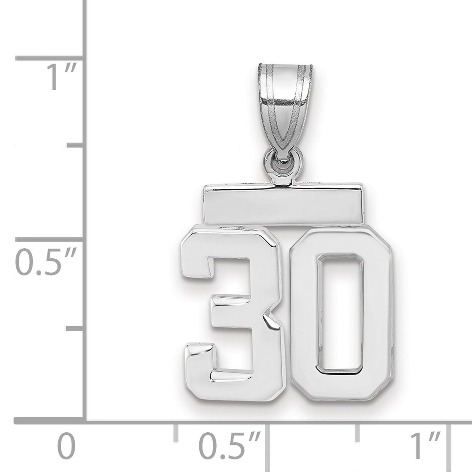 Small Polished Number 30 Charm Pendant in Real 14k White Gold