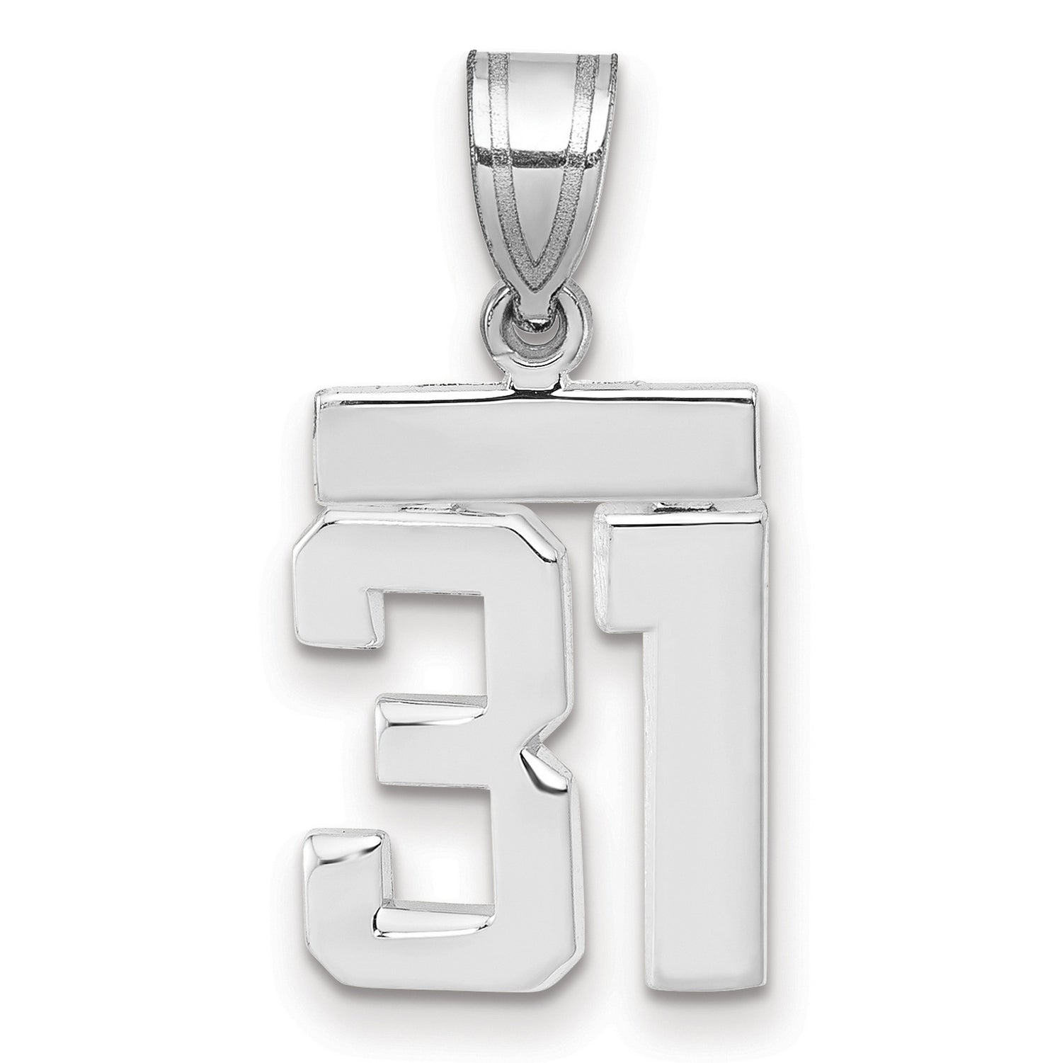 Small Polished Number 31 Charm Pendant in Real 14k White Gold