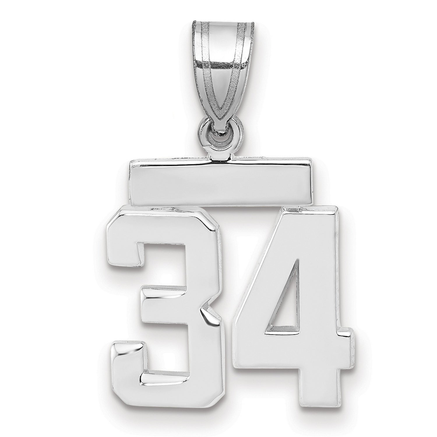 Small Polished Number 34 Charm Pendant in Real 14k White Gold