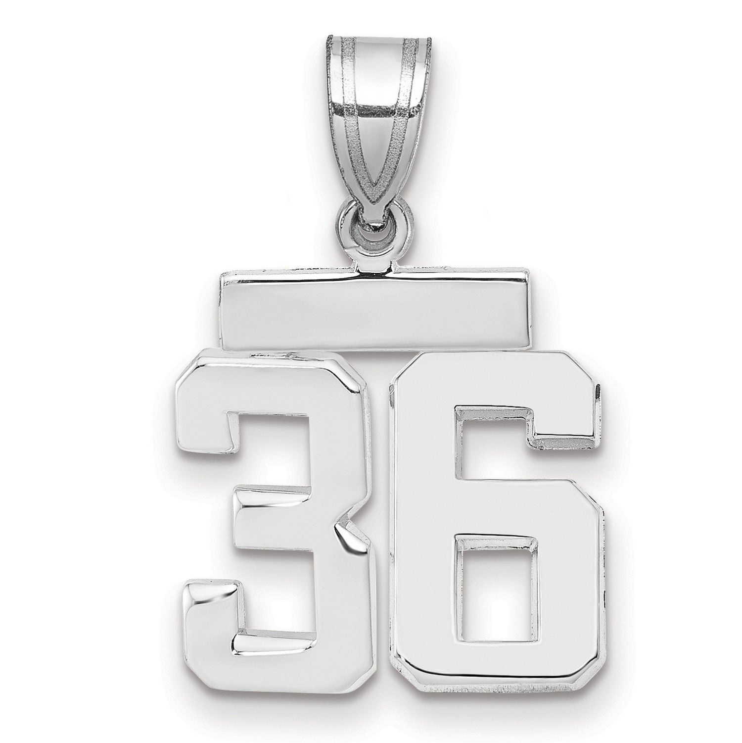 Small Polished Number 36 Charm Pendant in Real 14k White Gold