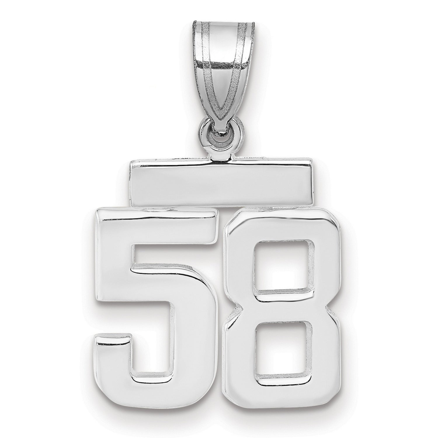 Small Polished Number 58 Charm Pendant in Real 14k White Gold