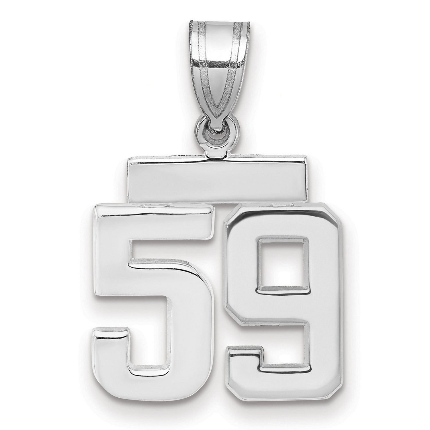 Enhance your jewelry collection with our Small Polished Number 59 Charm Pendant and experience the timeless allure of finely crafted white gold. This pendant is more than just an accessory; it's a cherished keepsake that tells your unique story.