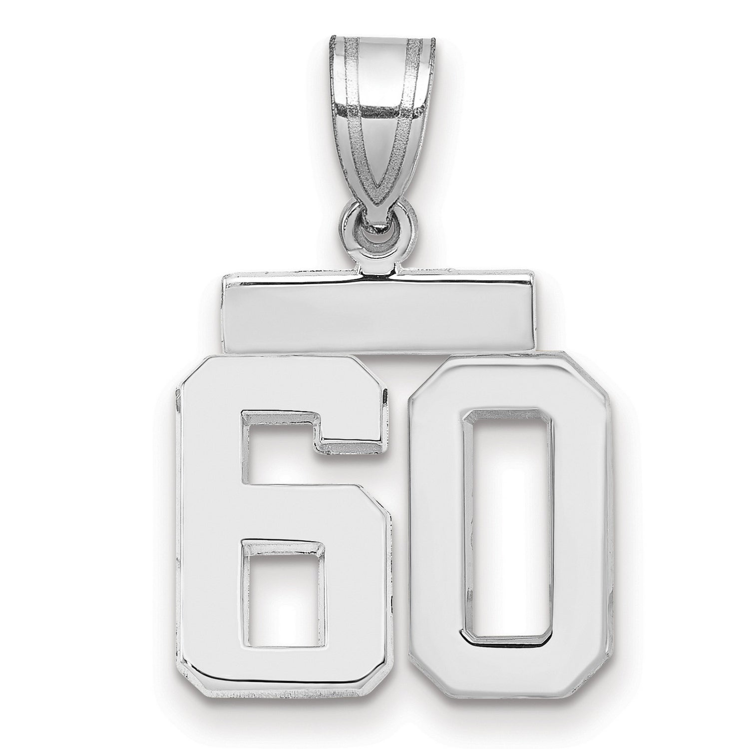 Small Polished Number 60 Charm Pendant in Real 14k White Gold