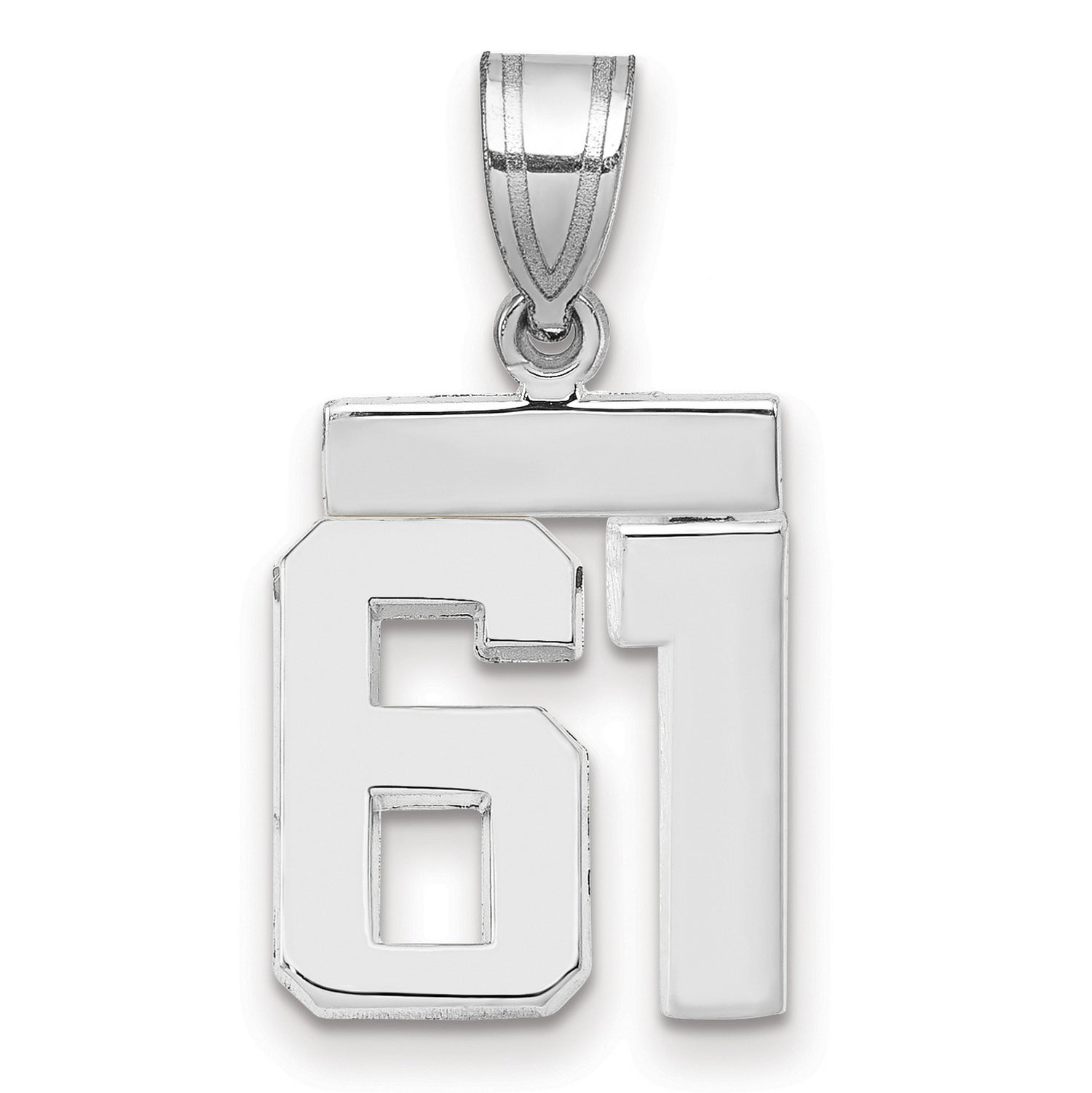 Small Polished Number 61 Charm Pendant in Real 14k White Gold