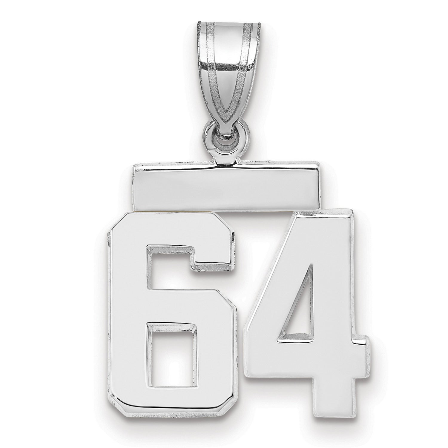 Small Polished Number 64 Charm Pendant in Real 14k White Gold