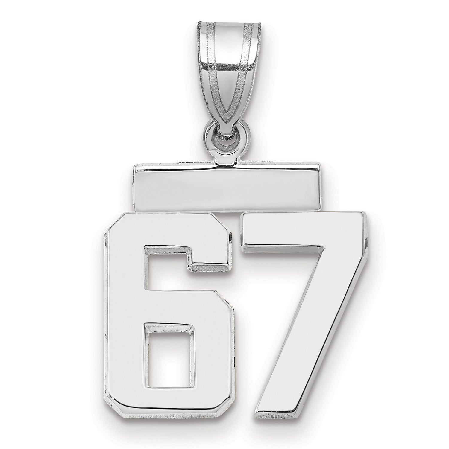 Small Polished Number 67 Charm Pendant in Real 14k White Gold
