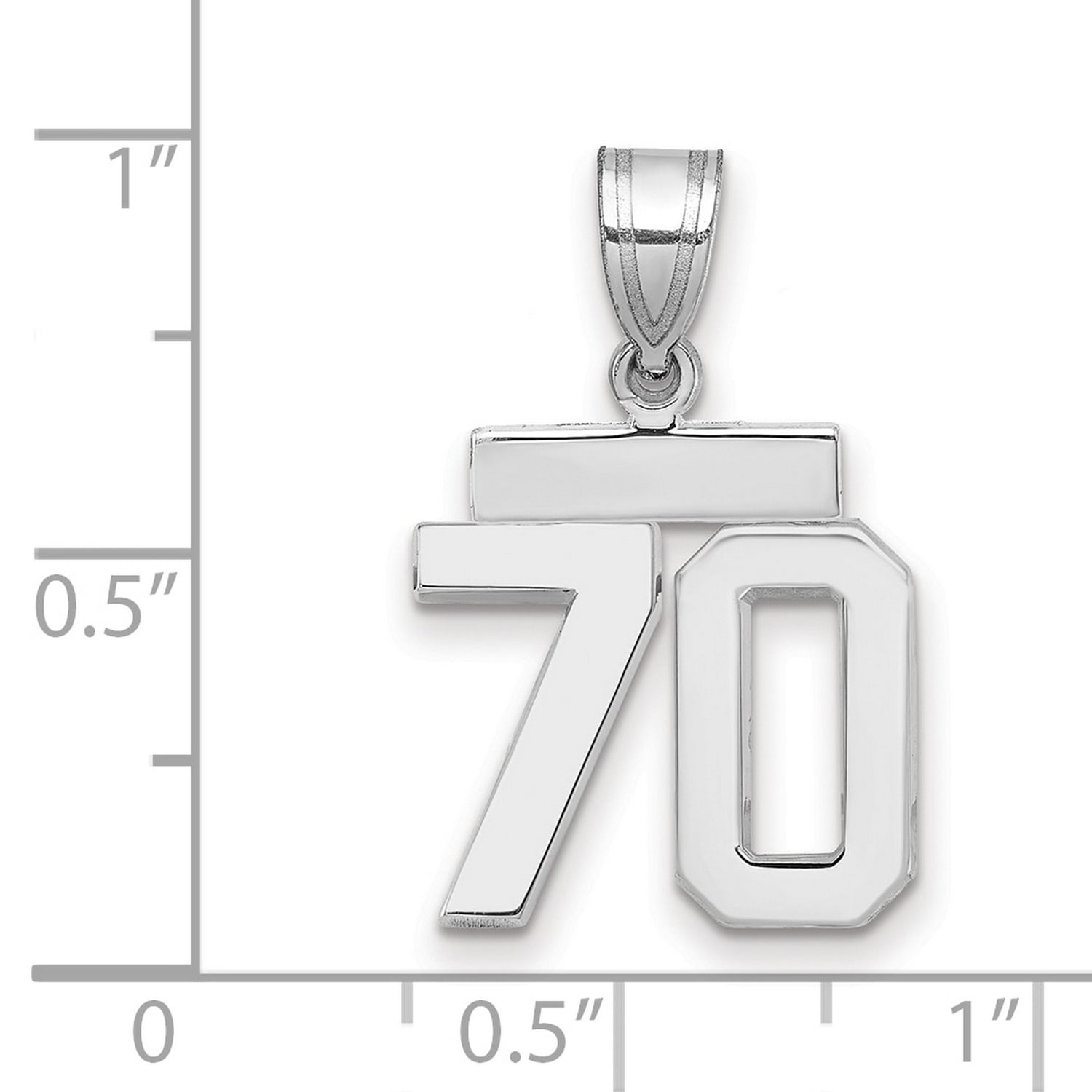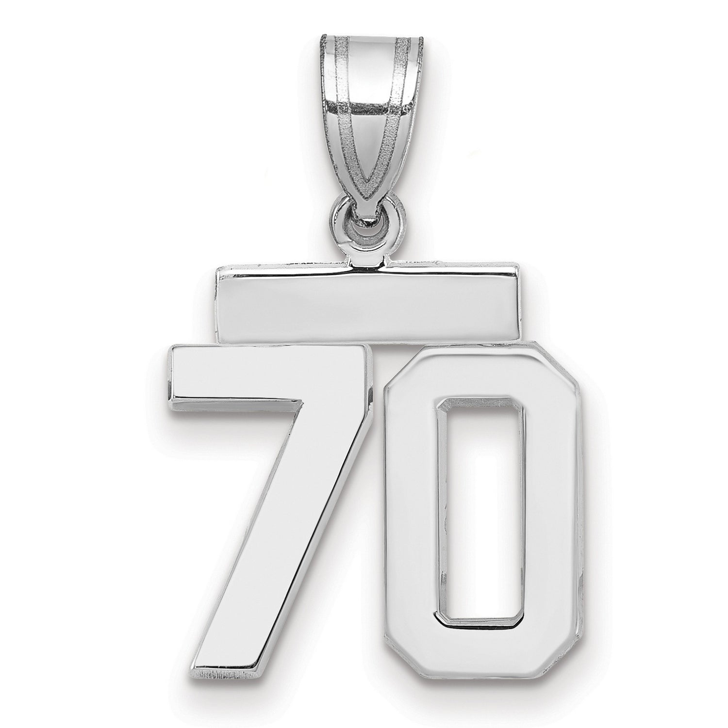 Small Polished Number 70 Charm Pendant in Real 14k White Gold