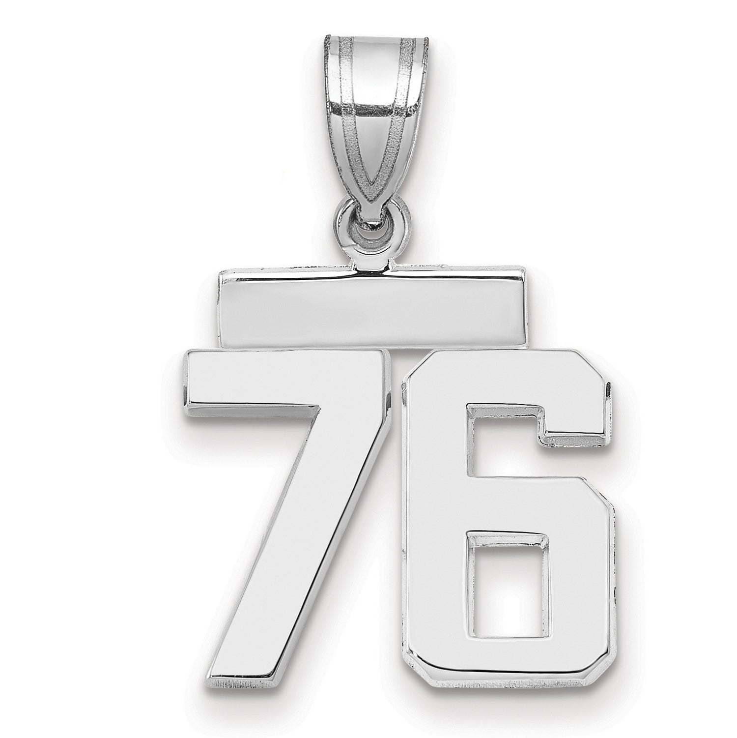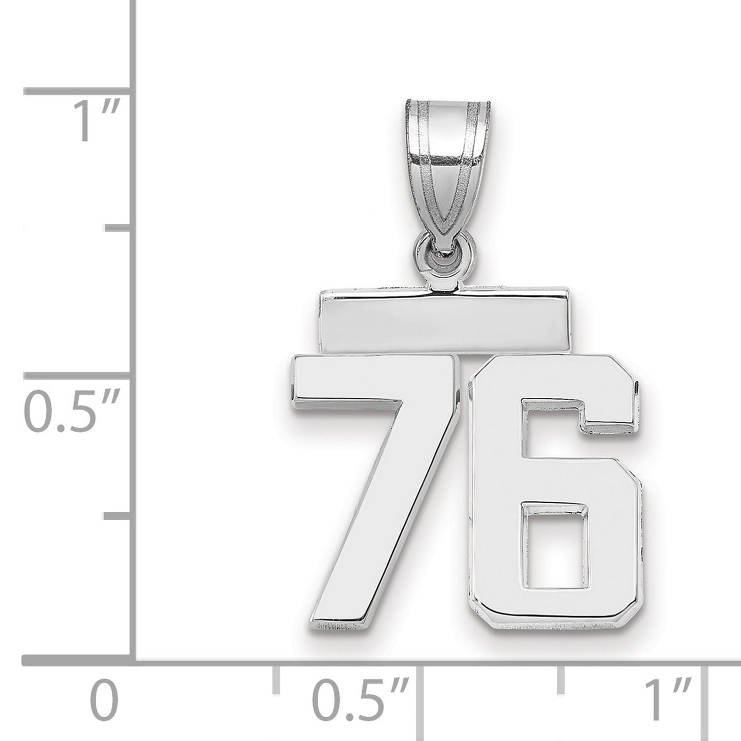 Small Polished Number 76 Charm Pendant in Real 14k White Gold