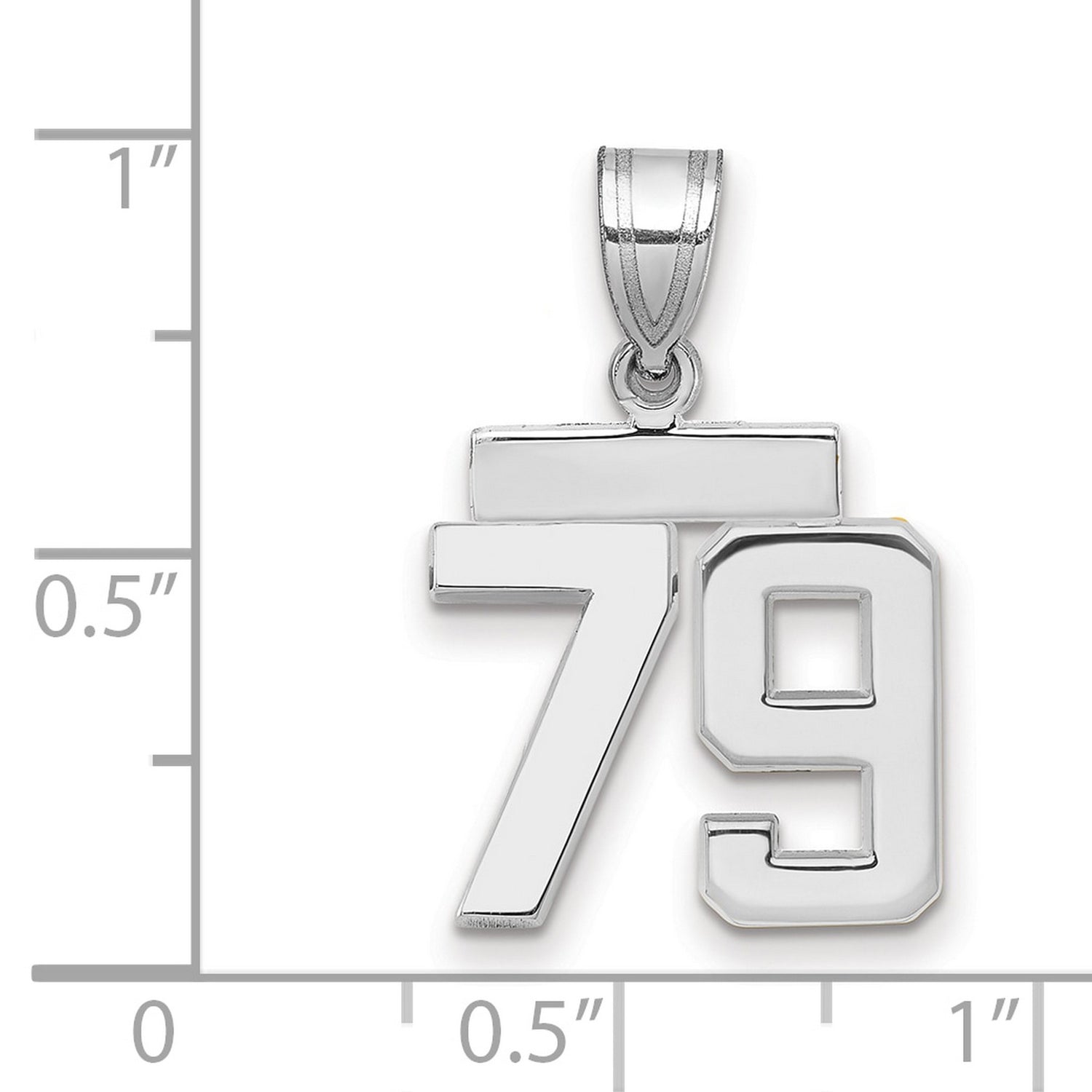 Small Polished Number 79 Charm Pendant in Real 14k White Gold