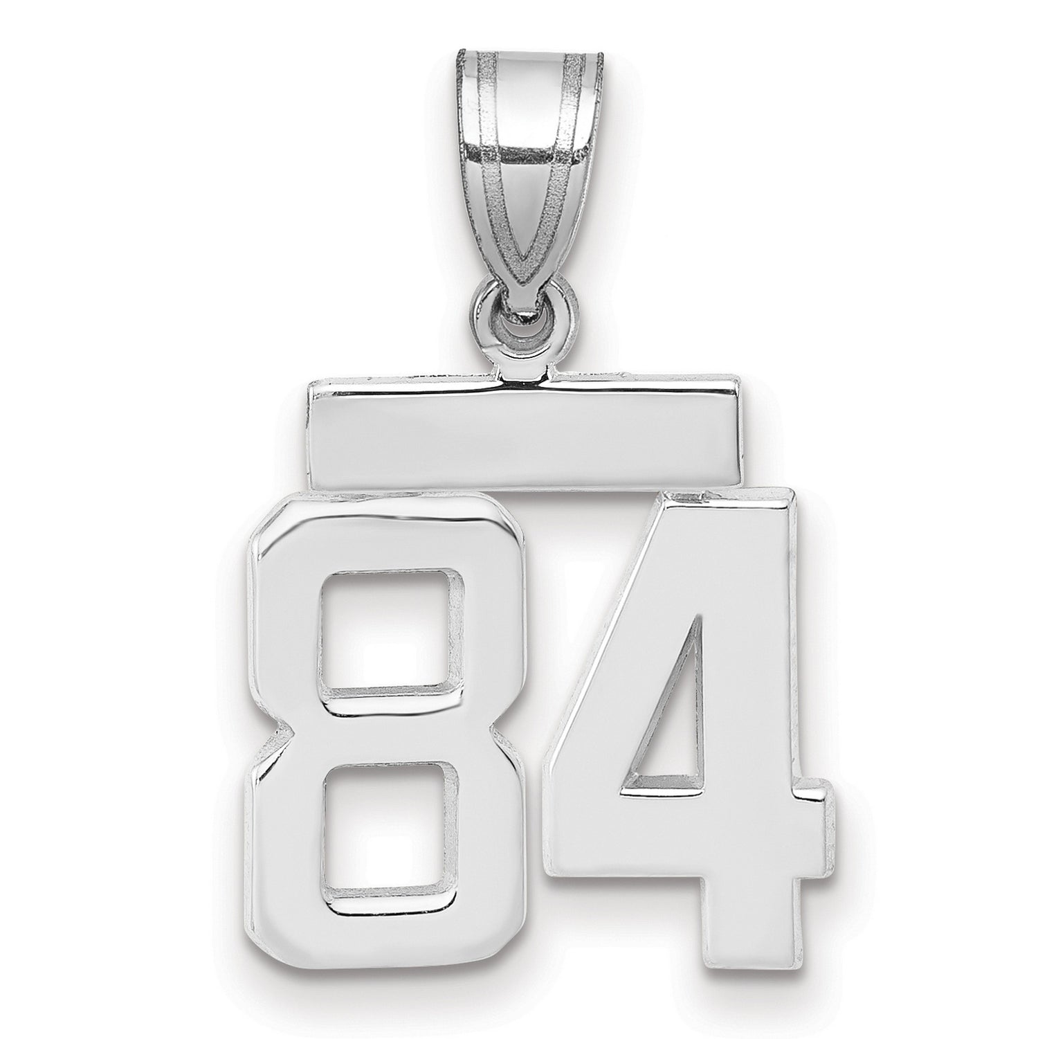Small Polished Number 84 Charm Pendant in Real 14k White Gold