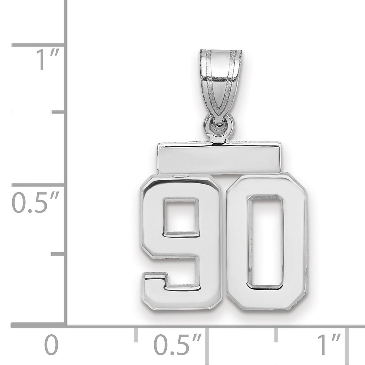 Small Polished Number 90 Charm Pendant in Real 14k White Gold