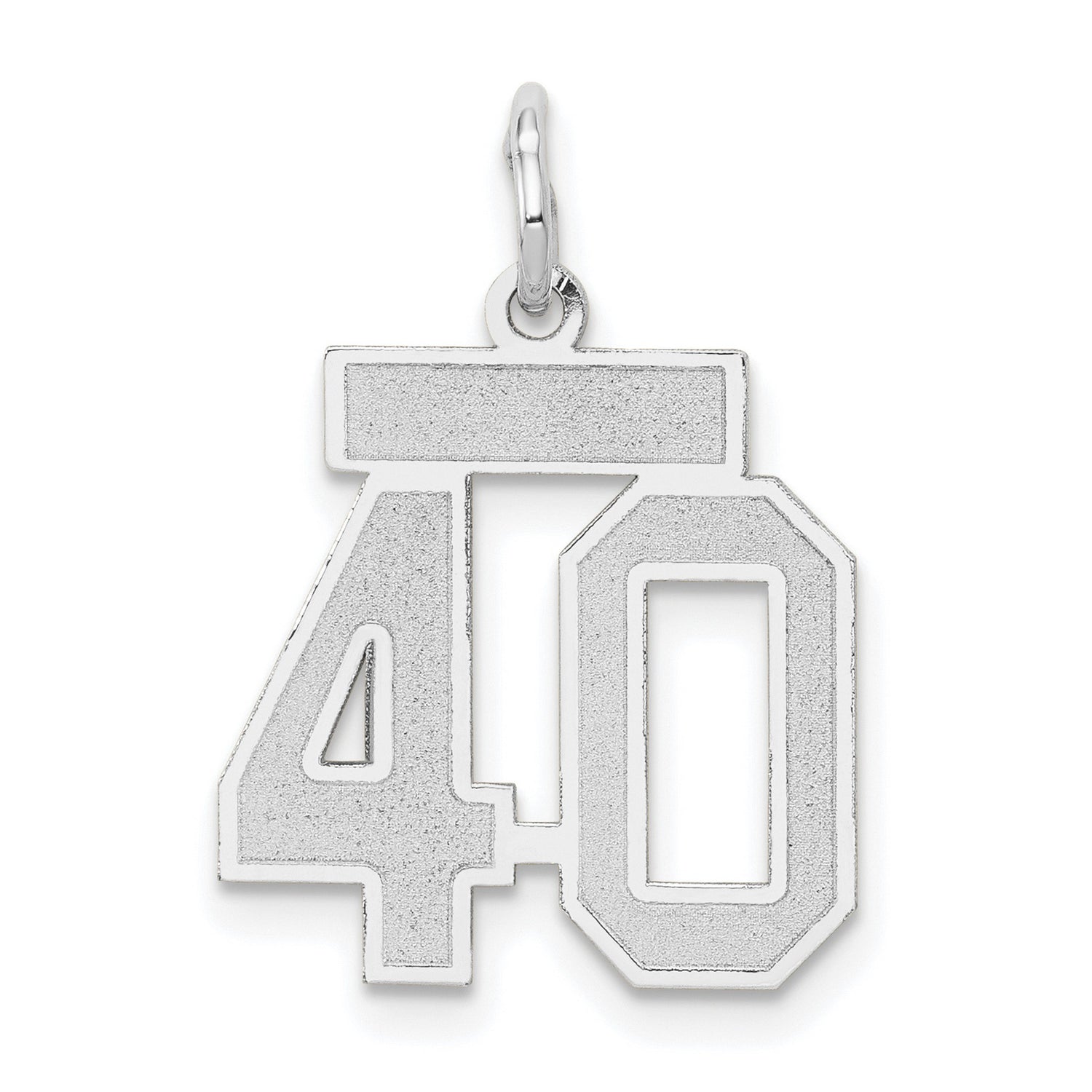 Embrace timeless elegance and celebrate life's important moments with our Small Satin Number 40 Charm Pendant in Real 14k White Gold. Add it to your collection today or gift it to someone special.
