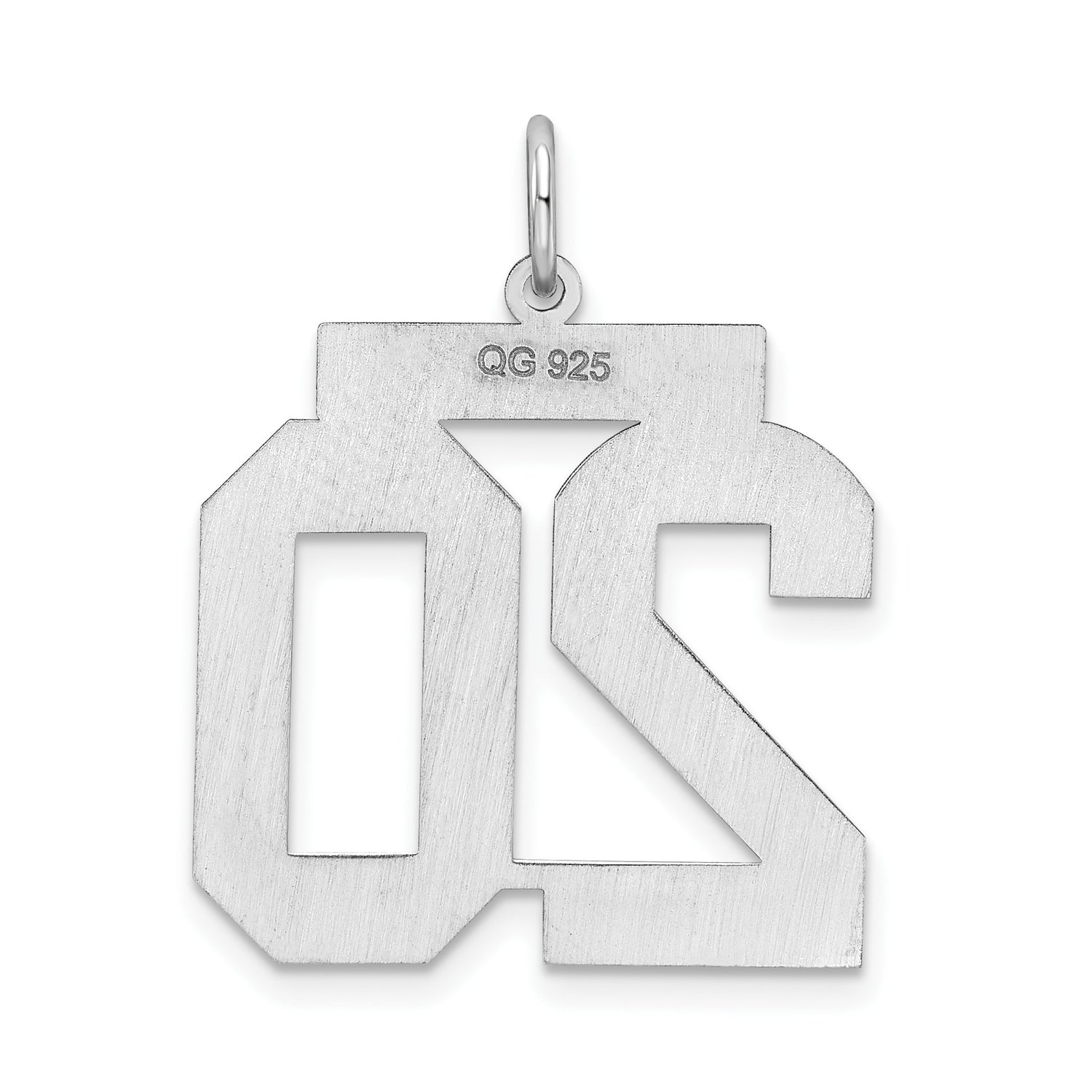 Large Polished Number 20 Charm Pendant in Real 925 Sterling Silver