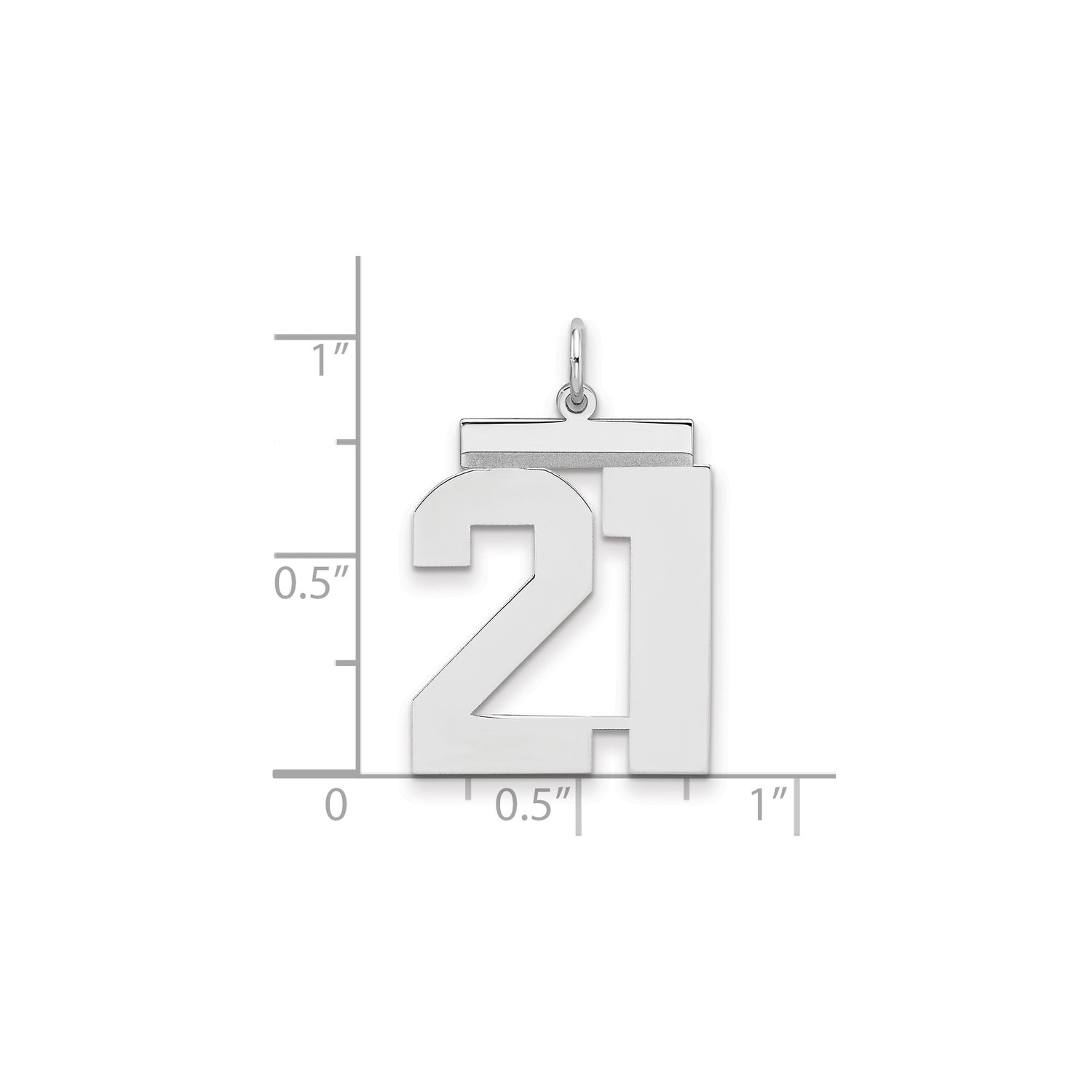 Sterling Silver Number 21 Pendant, Polished Milestone Charm for Men and Women