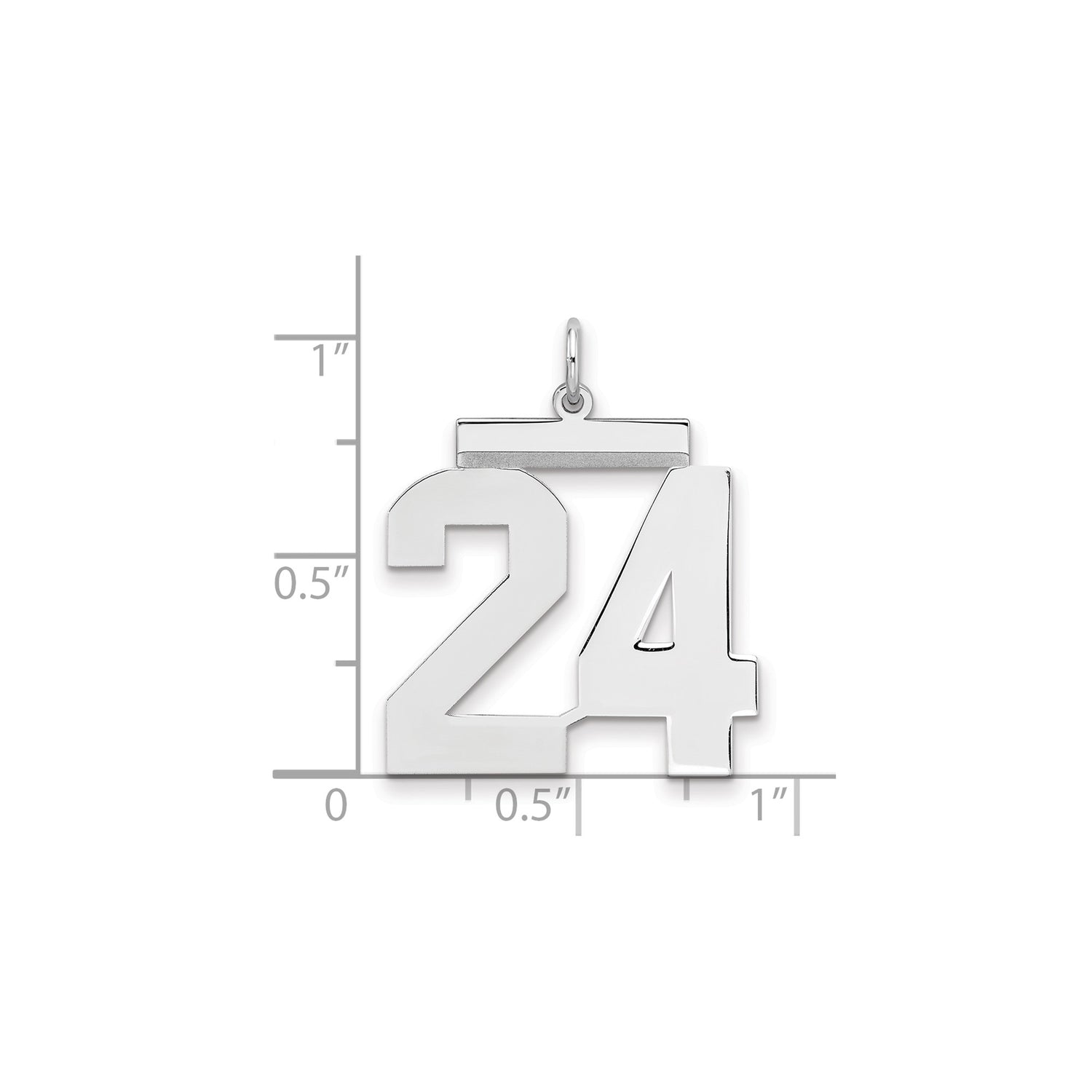 Large Polished Number 24 Charm Pendant in Real 925 Sterling Silver