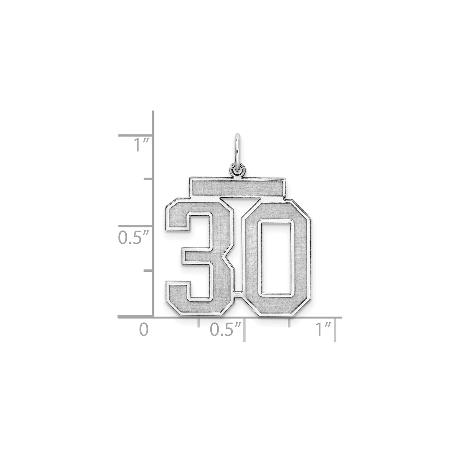 Sterling Silver Number 30 Pendant, Bold Varsity Style, Satin Finish, Unisex Sports Charm