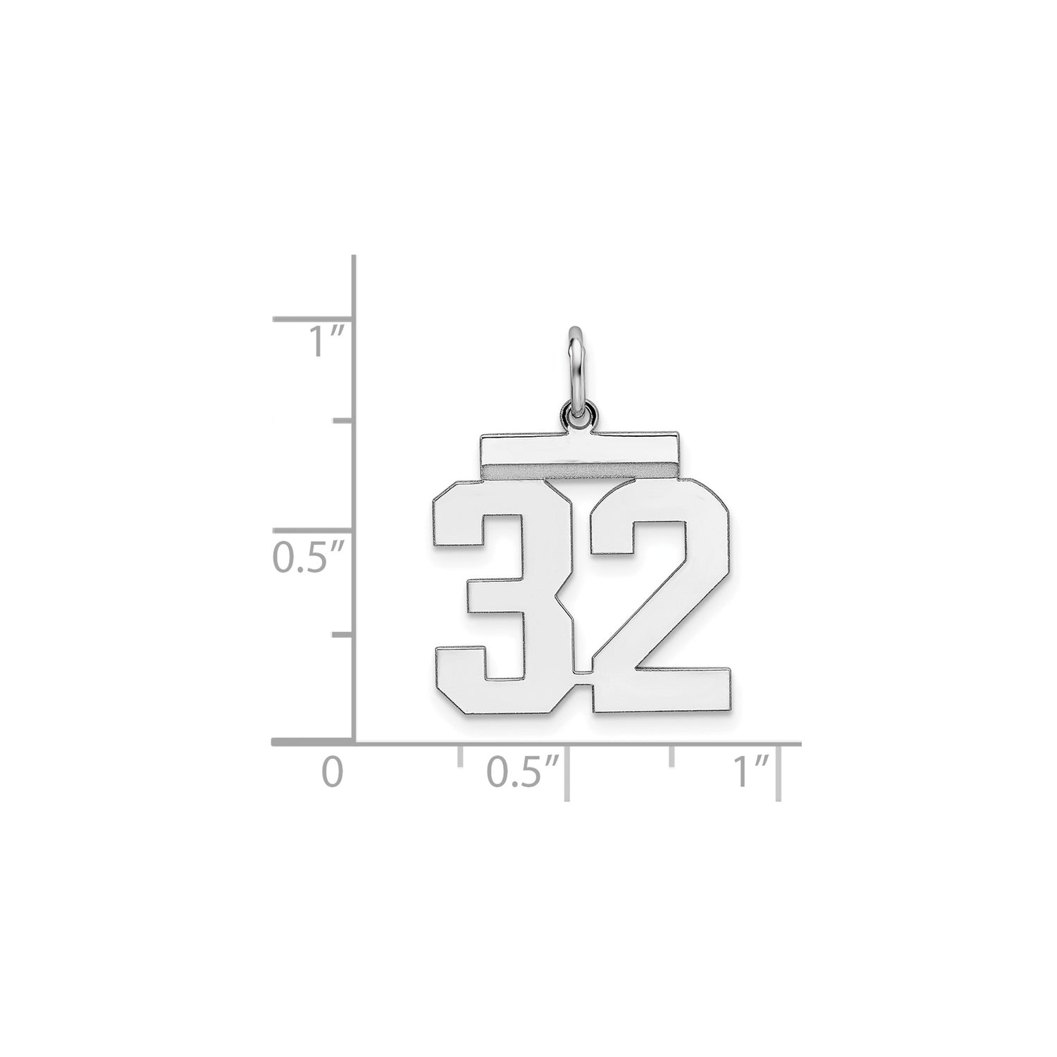 Sterling Silver Number 32 Pendant, Unisex Sports Charm for Team Pride or Jersey Fan Jewelry