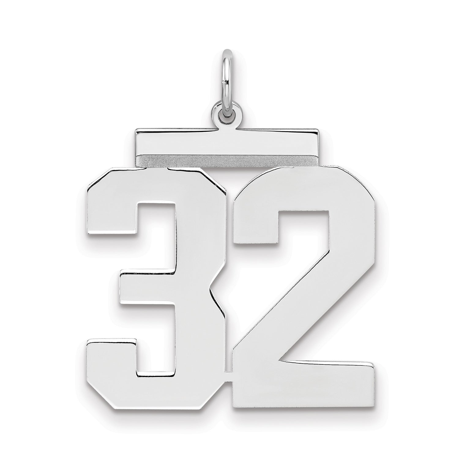 Sterling Silver Number 32 Pendant with Bold Block Numerals, Sports Jersey Style Charm