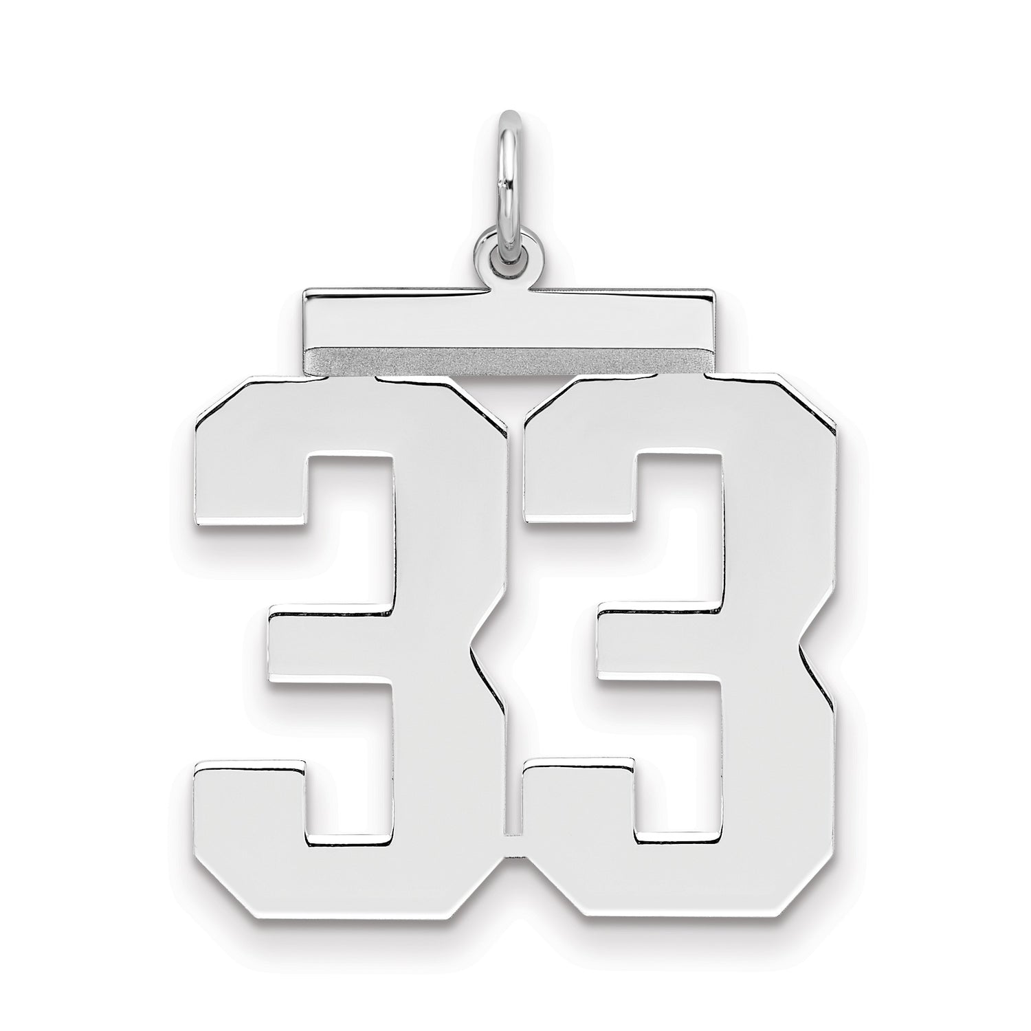 Sterling Silver Number 33 Pendant, Polished Block Digits, Unisex Sports Charm