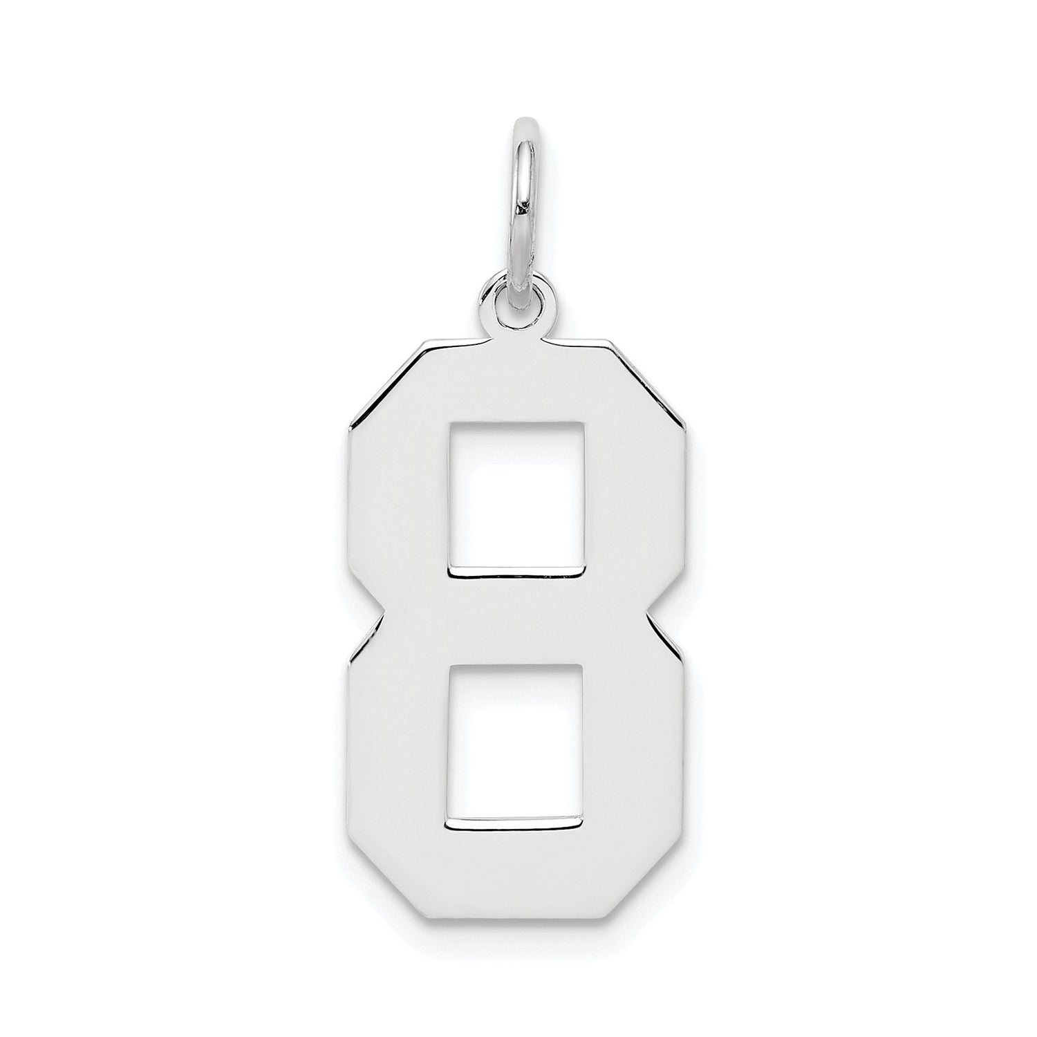 Sterling Silver Number 8 Pendant, Bold Block Style Charm, Unisex Sports or Lucky Number Jewelry