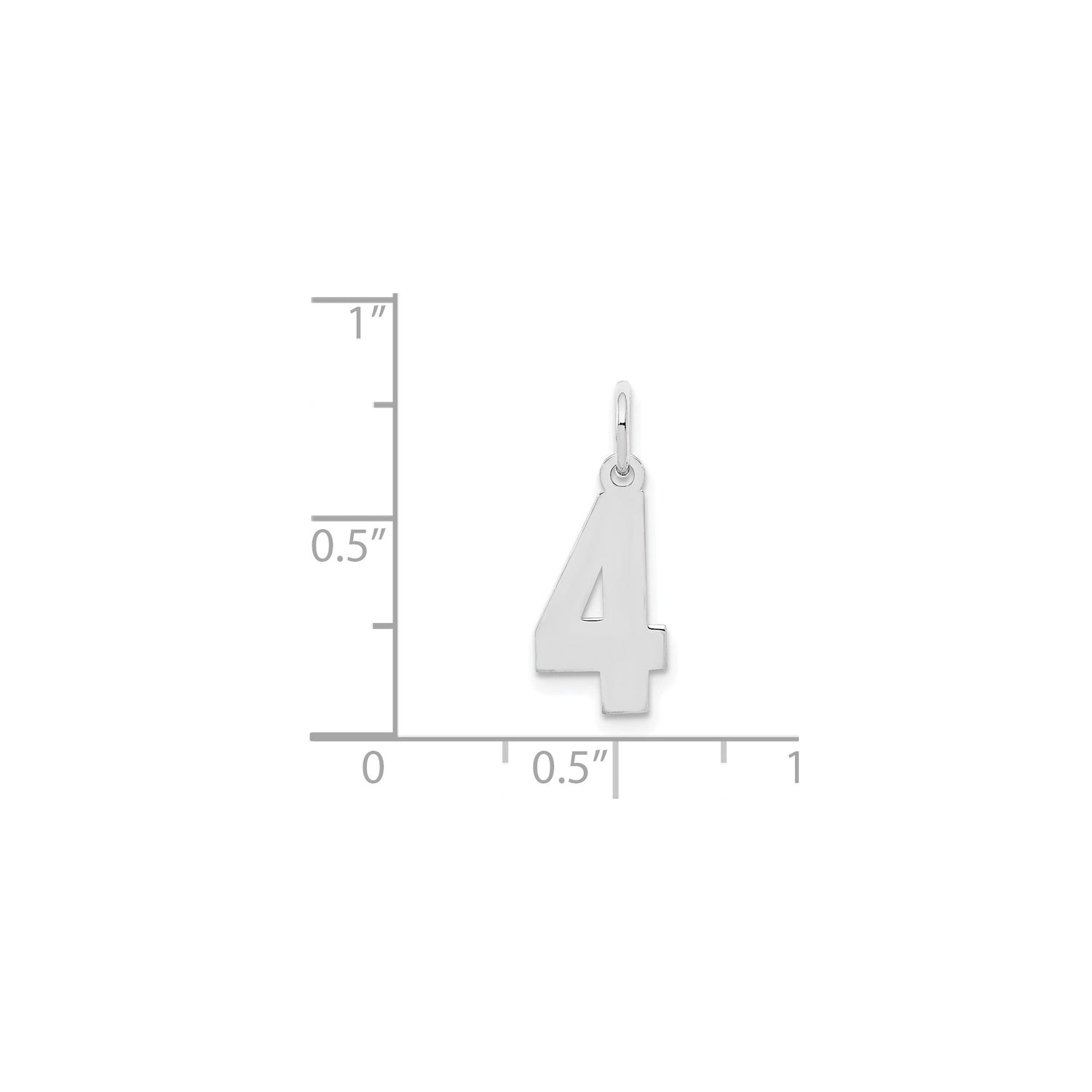 Small Polished Number 4 Charm Pendant in Real 925 Sterling Silver