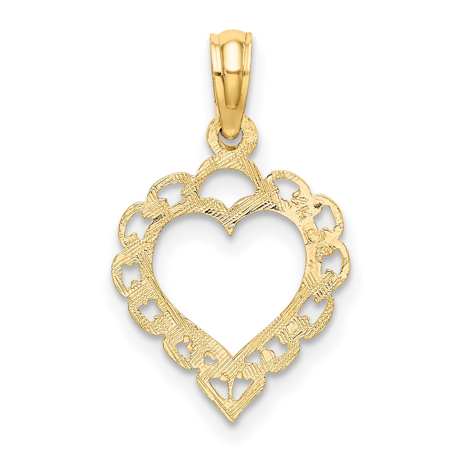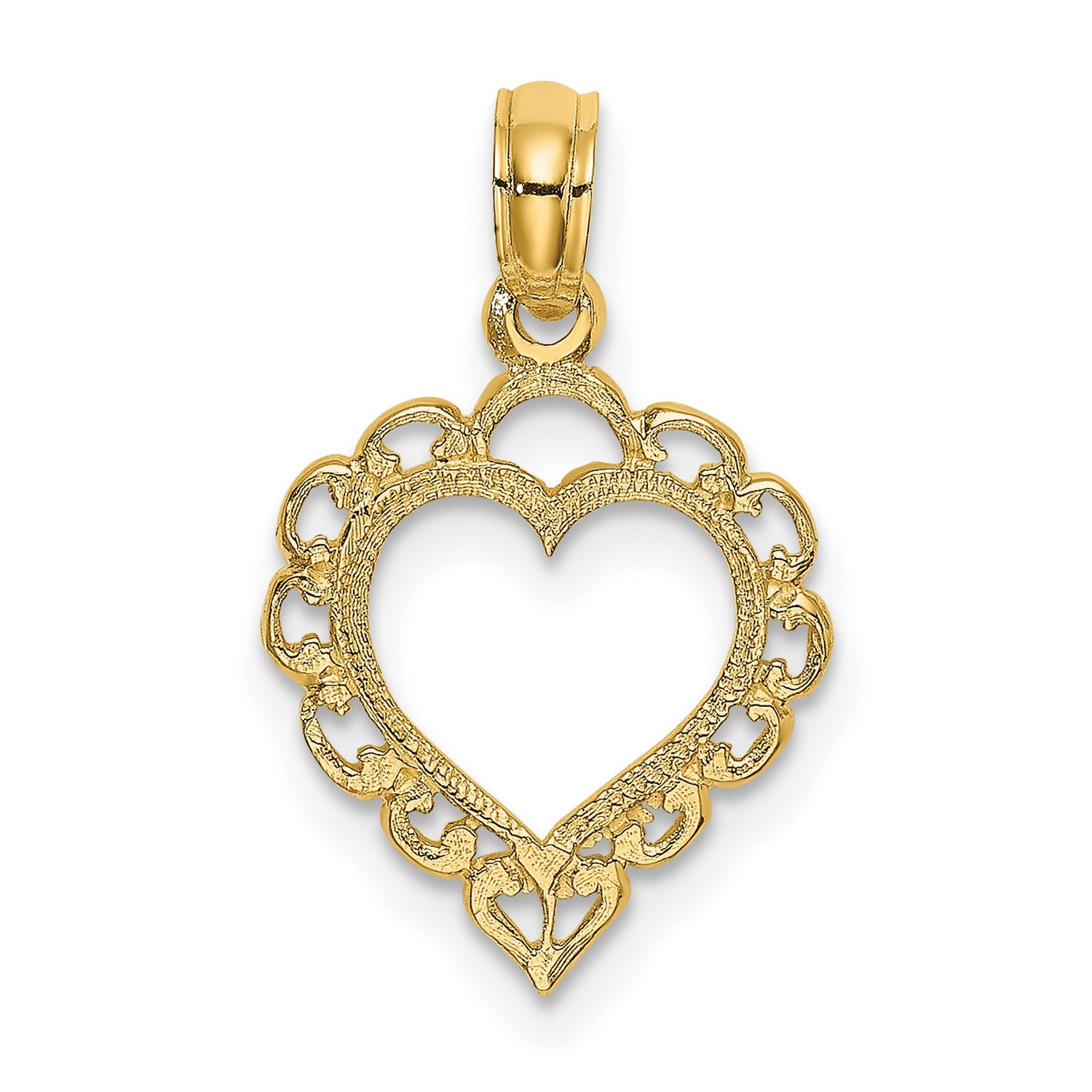 Experience luxury with our Heart Lace Trim Charm Pendant in 14k Yellow Gold, a perfect blend of beauty and sophistication. Order now and let this exquisite pendant add a touch of elegance to your jewelry collection.