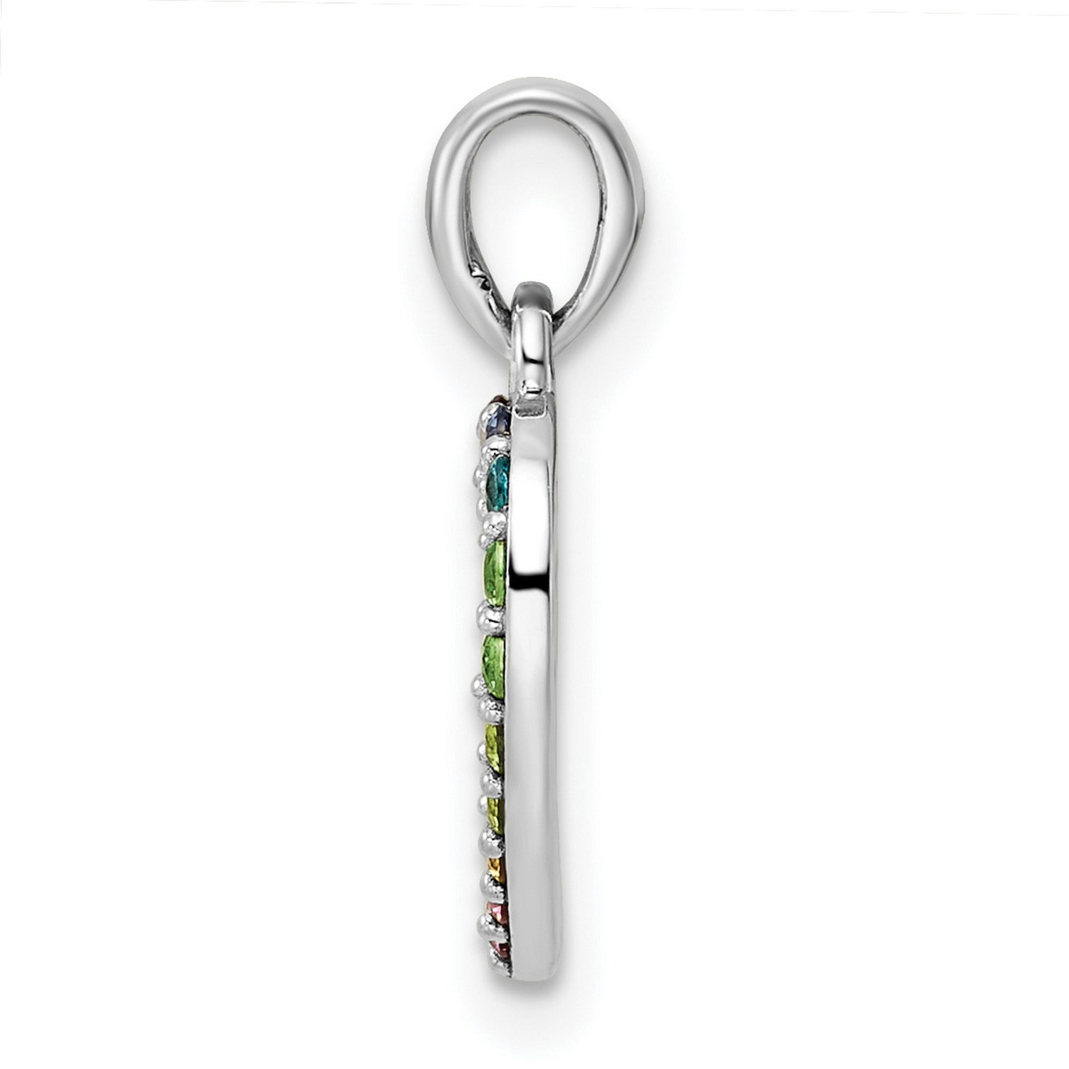 Sterling Silver Heart Pendant with Multicolor Cubic Zirconia, Rainbow Gradient Design