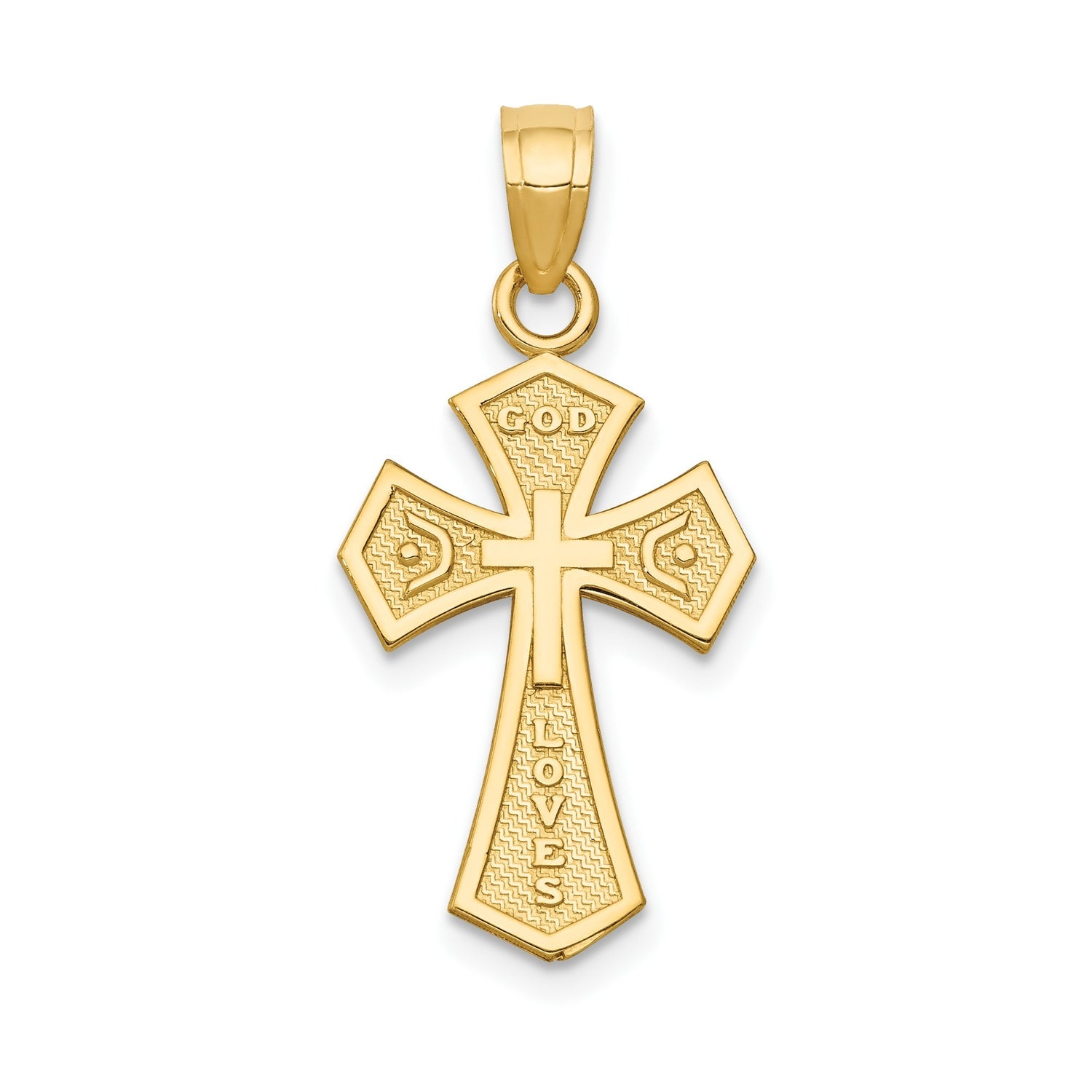 14k Yellow Gold Reversible Faith Cross Pendant with Scrollwork and Textured Design