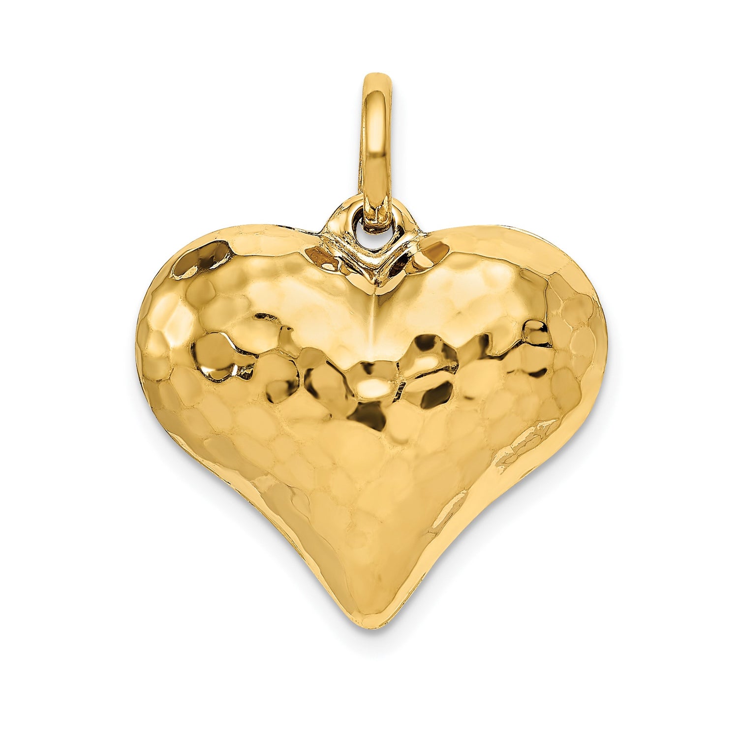 Discover Timeless Elegance with Our Polished Hammered Medium Puffed Heart Charm Pendant