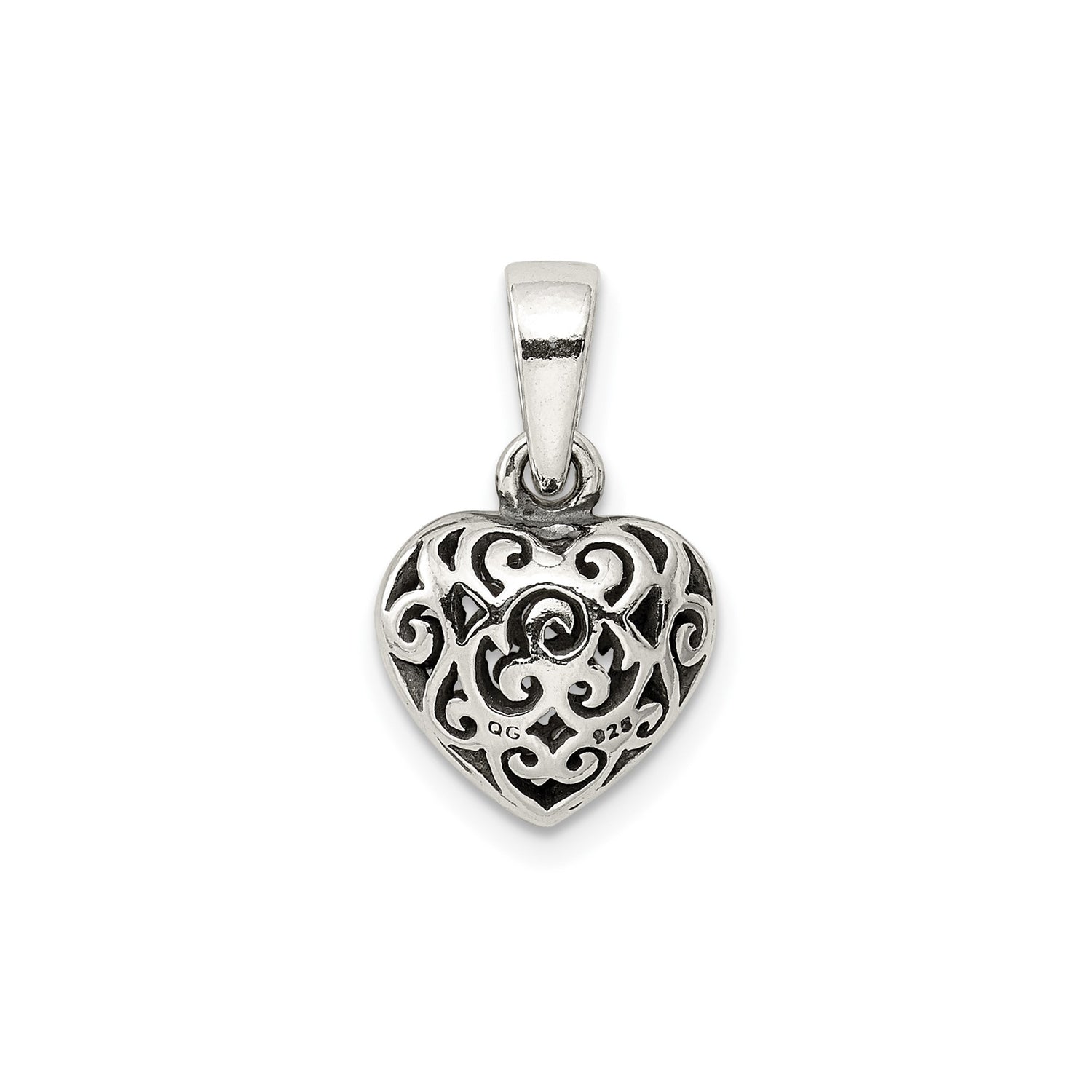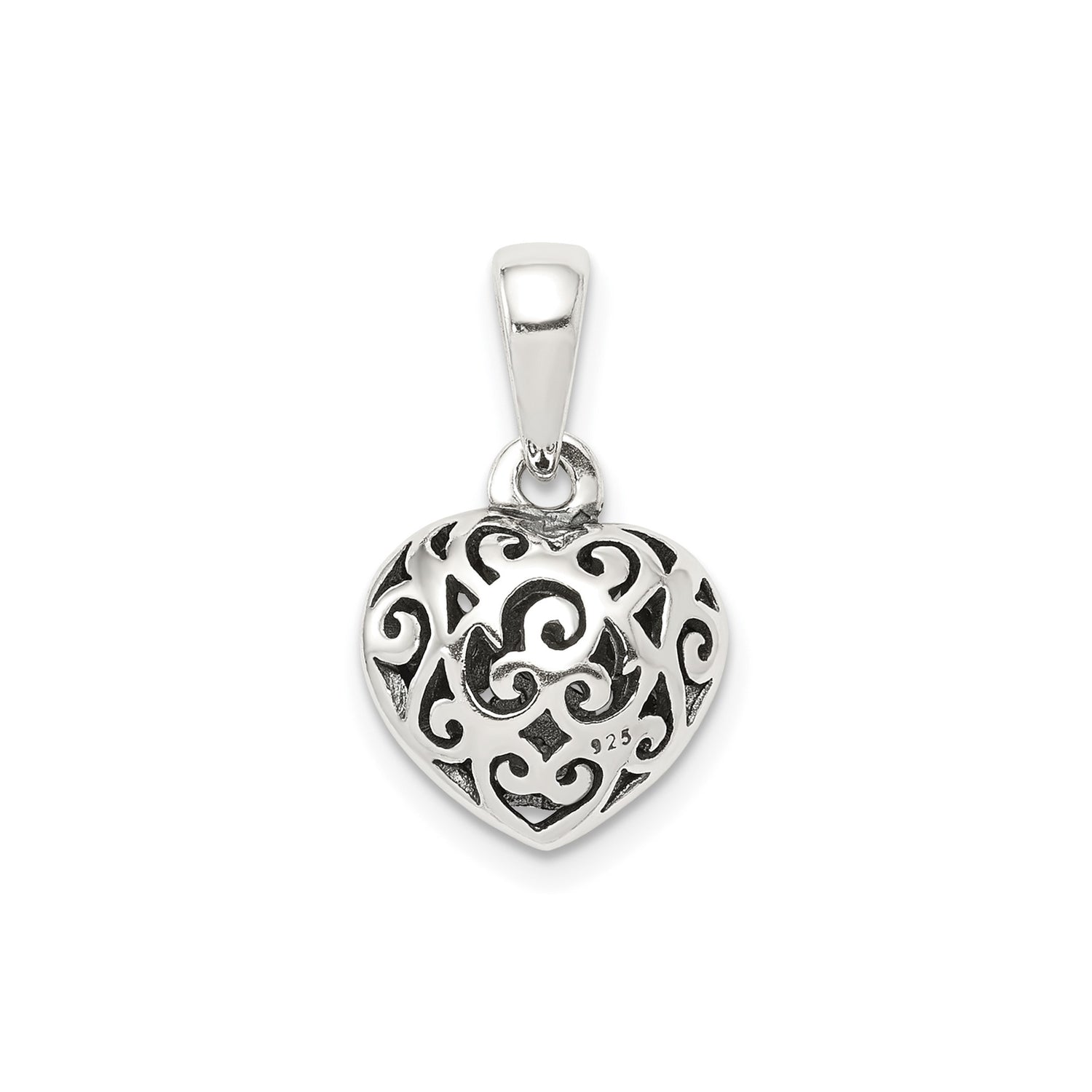 Sterling Silver Heart Pendant with Filigree Scroll Design, Romantic Openwork Charm