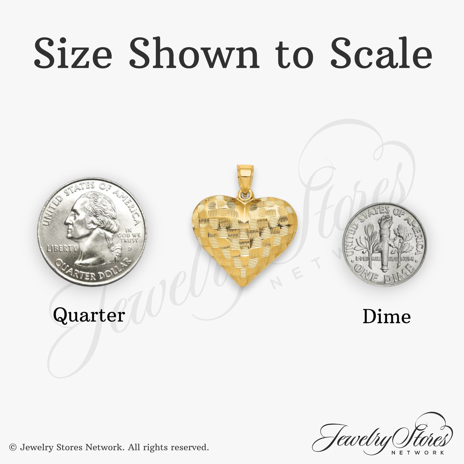 Textured Puff Heart Charm Pendant in Real 14k Yellow Gold