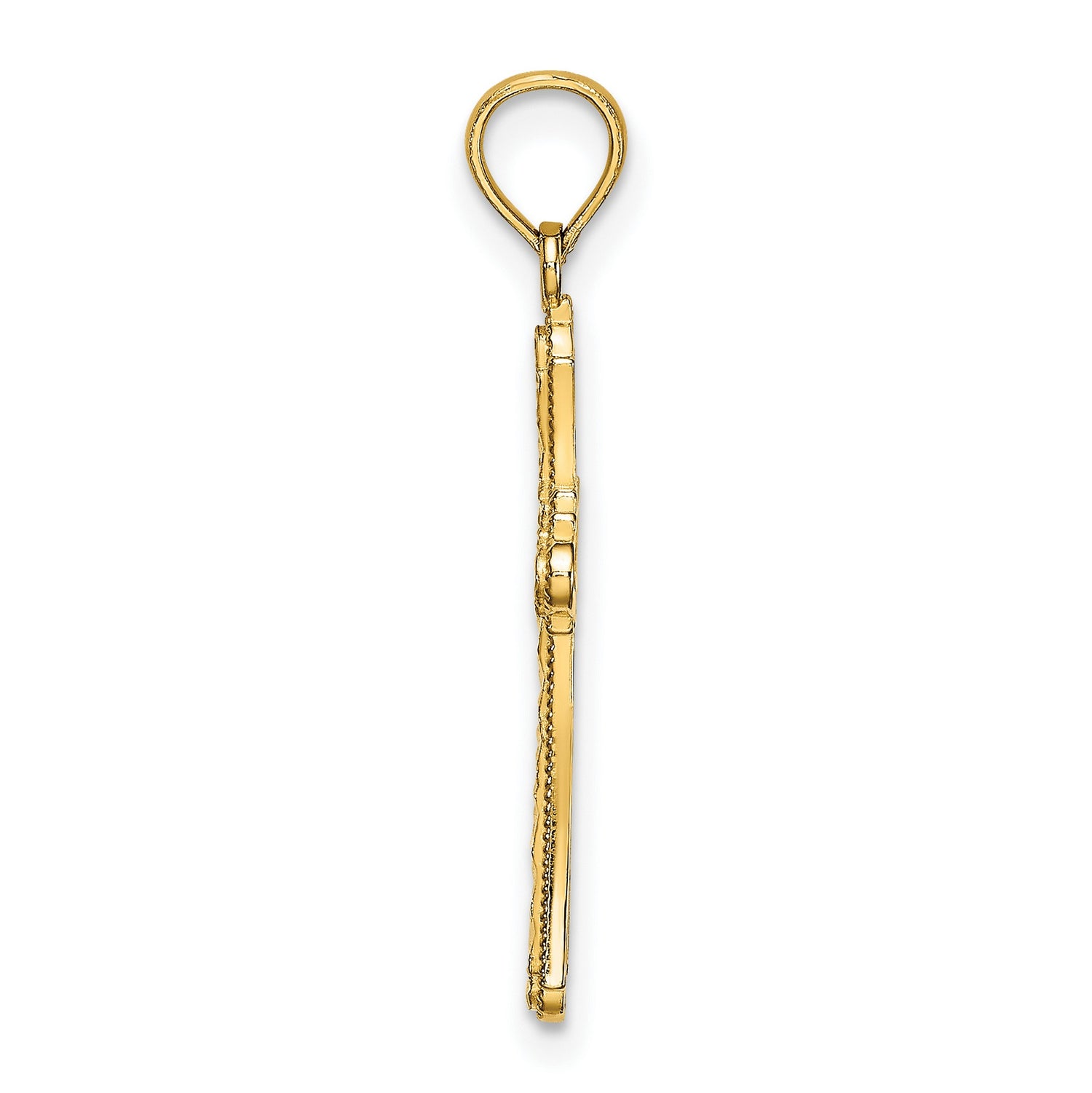 10k Yellow Gold Cross Pendant with Beaded Edge and Diamond Cut Finish