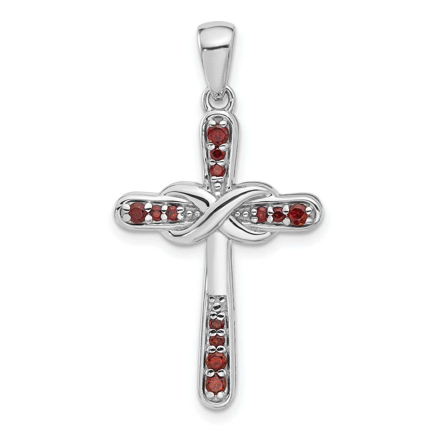 Sterling Silver Infinity Cross Pendant with Garnet, Spiritual Religious Jewelry for Men and Women