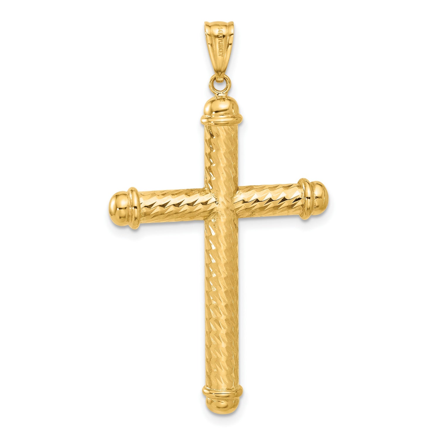 14k Yellow Gold Cross Pendant, Diamond Cut Polished Religious Jewelry for Men and Women