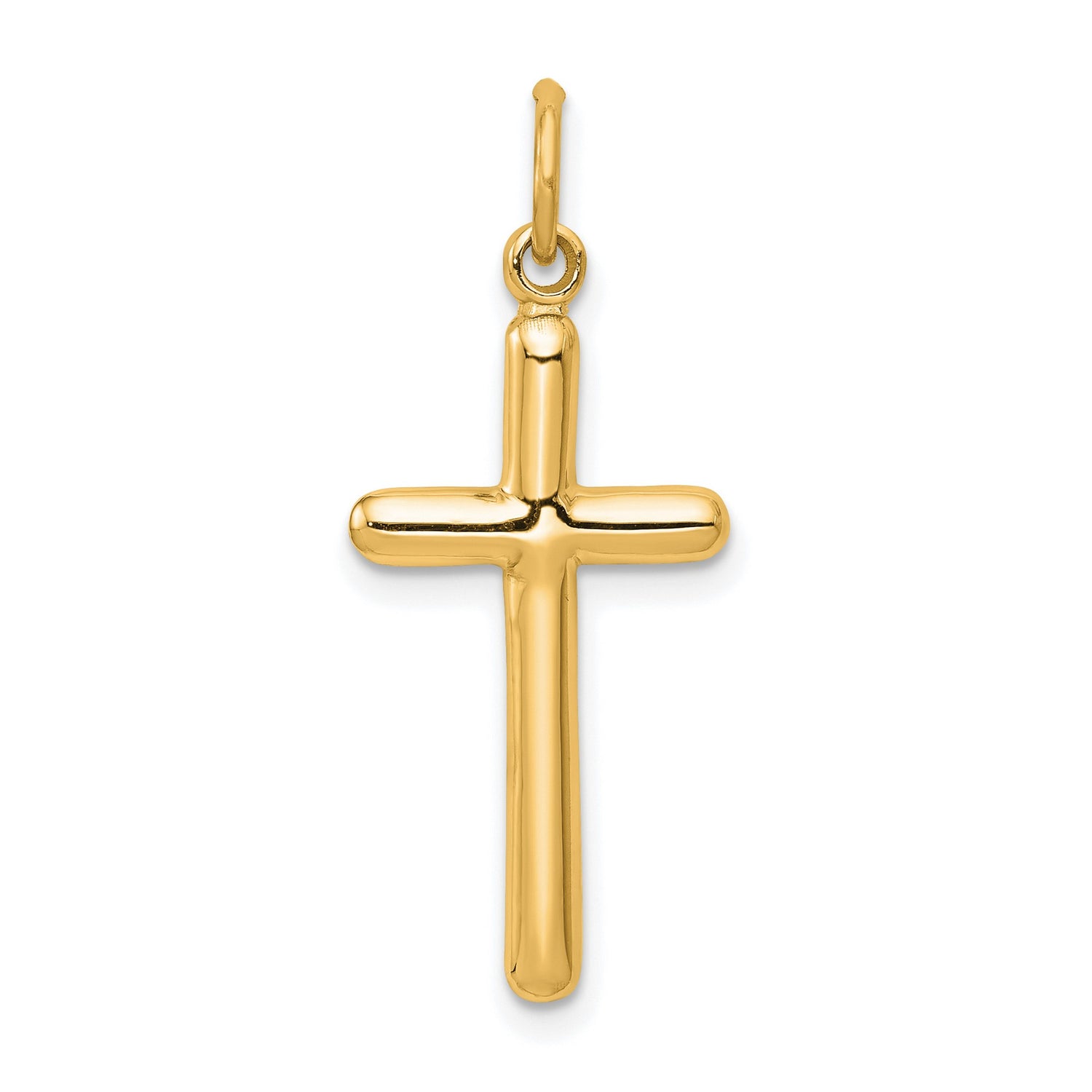14k Yellow Gold Cross Pendant, Polished Latin Cross Charm, Minimalist Religious Jewelry