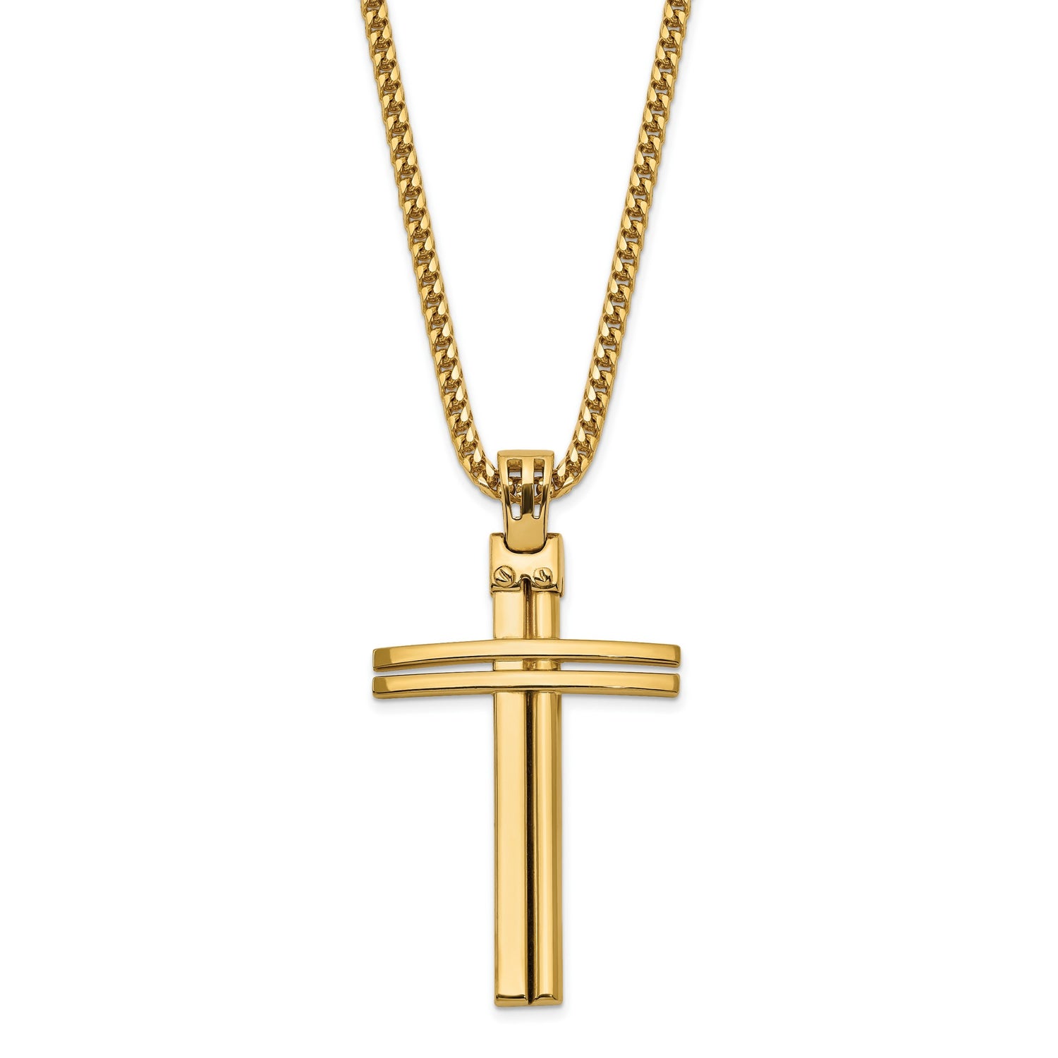 14k Yellow Gold Cross Pendant, Polished Linear Design, Unisex Minimalist Religious Jewelry