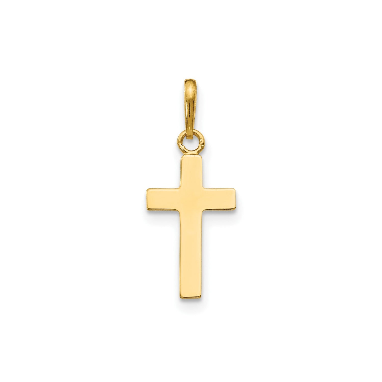 14k Yellow Gold Cross Pendant, Polished Minimalist Christian Charm for Women or Unisex Wear