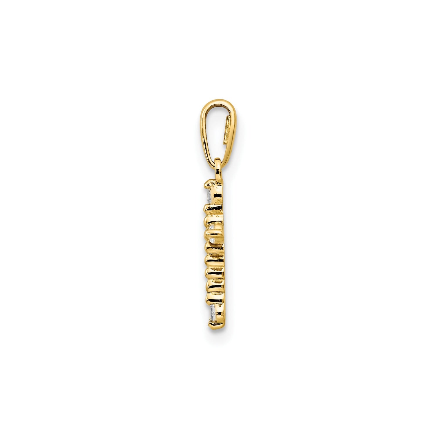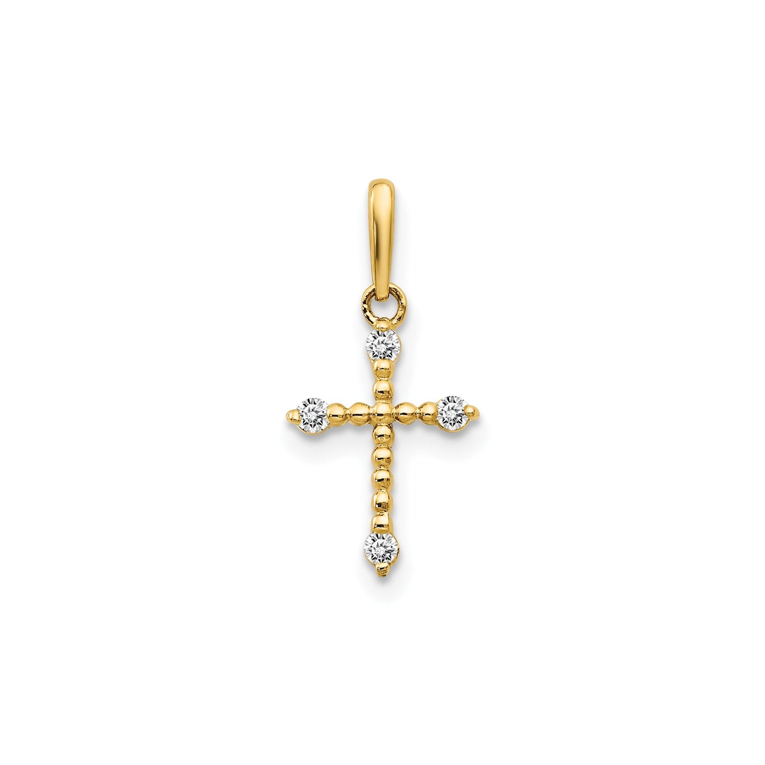 14k Yellow Gold Cross Pendant with Cubic Zirconia and Beaded Detailing for Women
